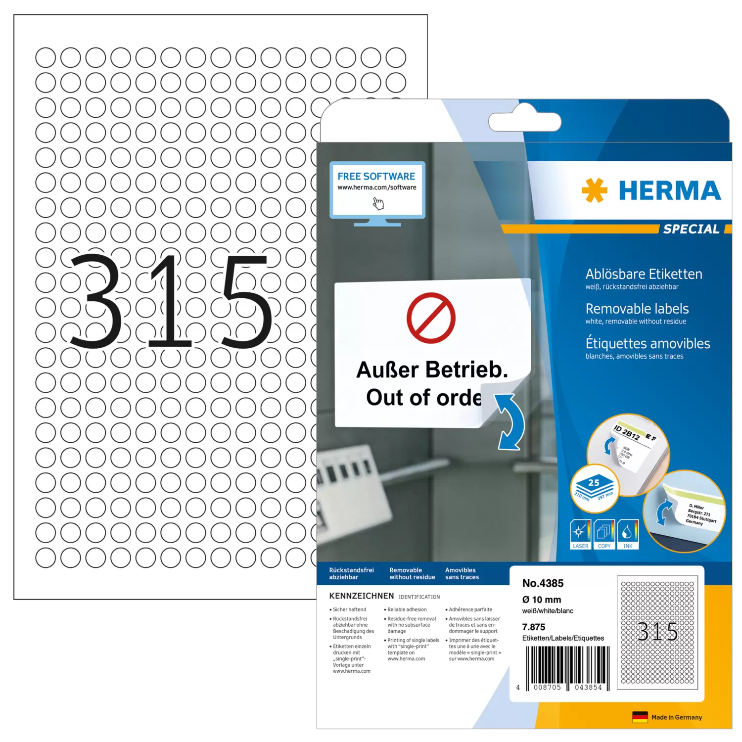 | Inhalt | 7875 Etiketten / 25 Blatt |