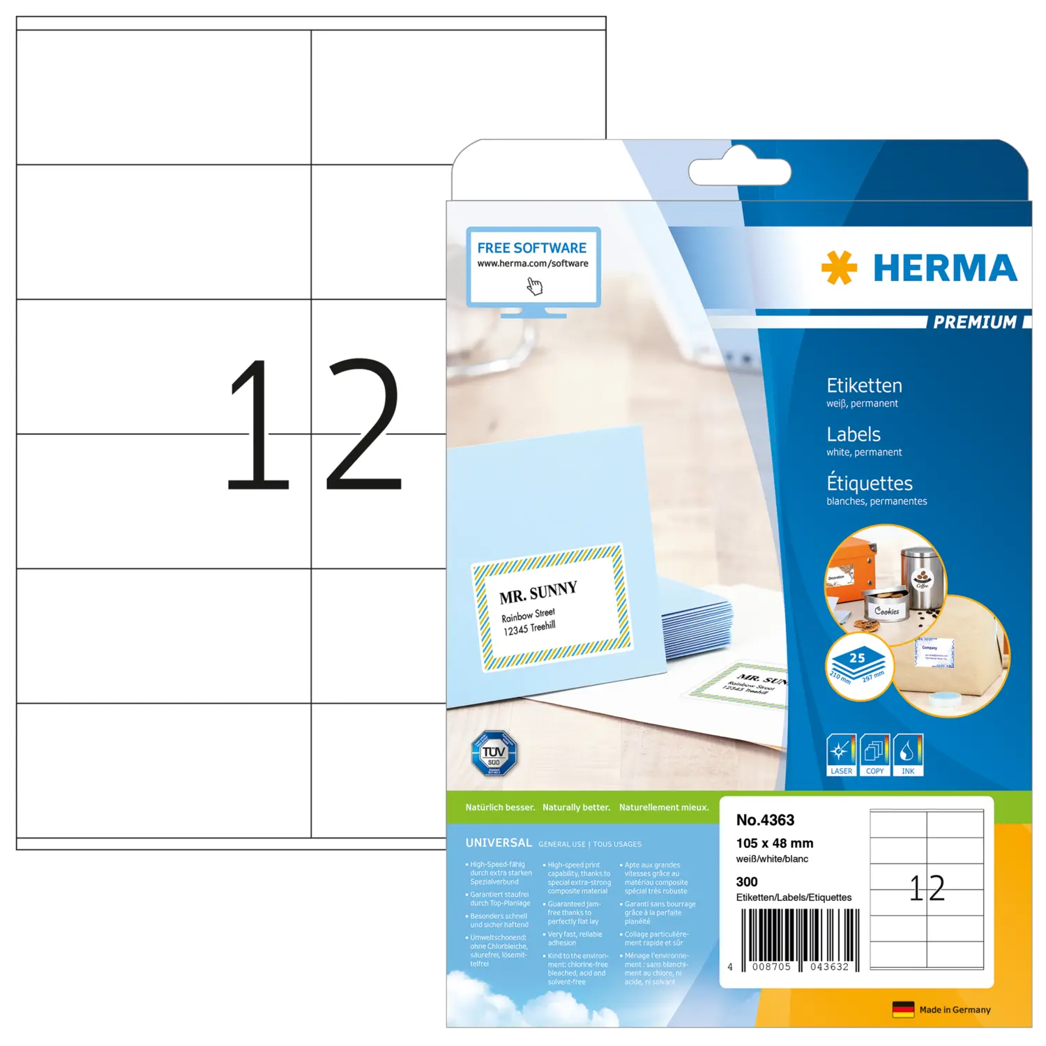 PREMIUM Etiketten A4, 105 x 48 mm, weiß, permanent haftend