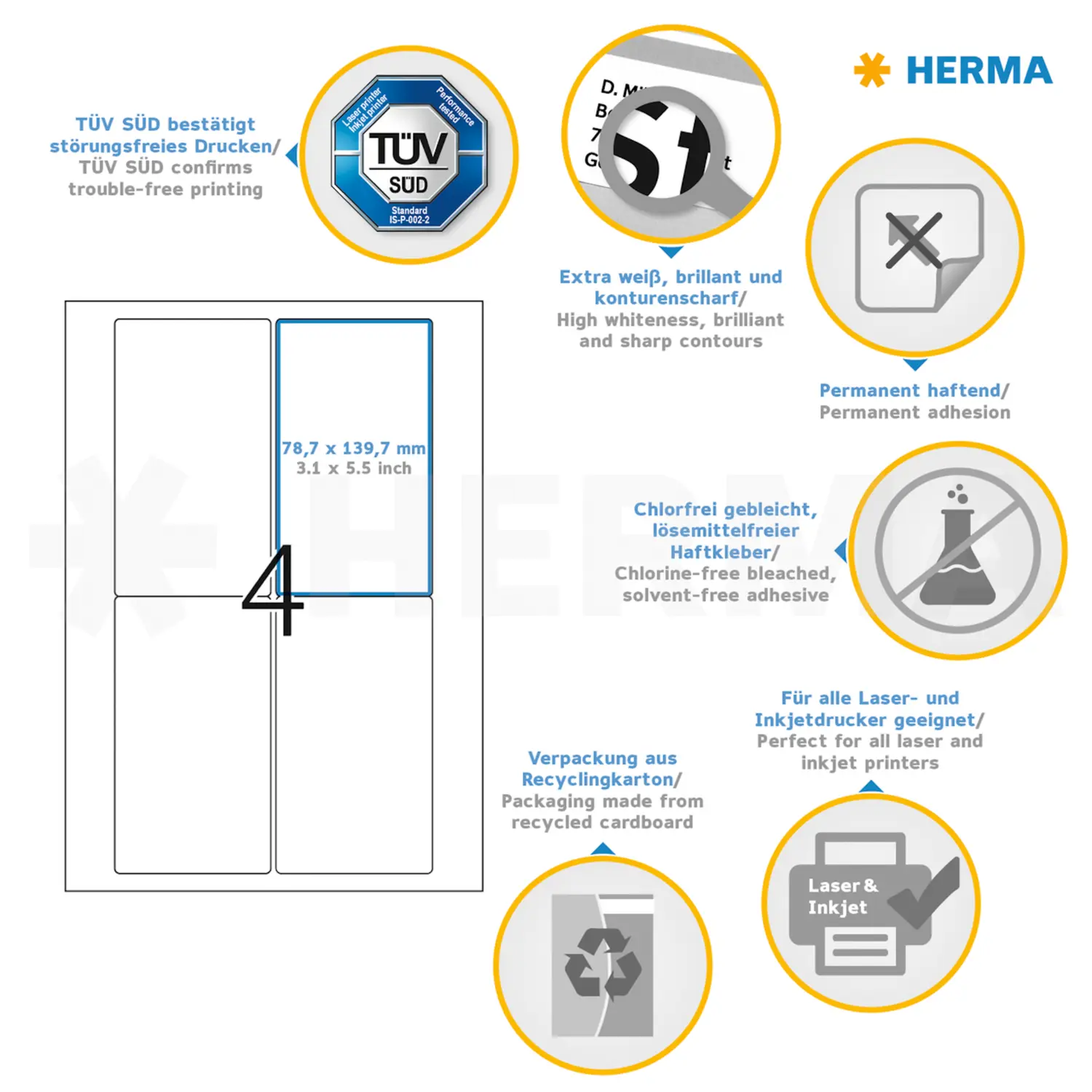 | Inhalt | 400 Etiketten / 100 Blatt |