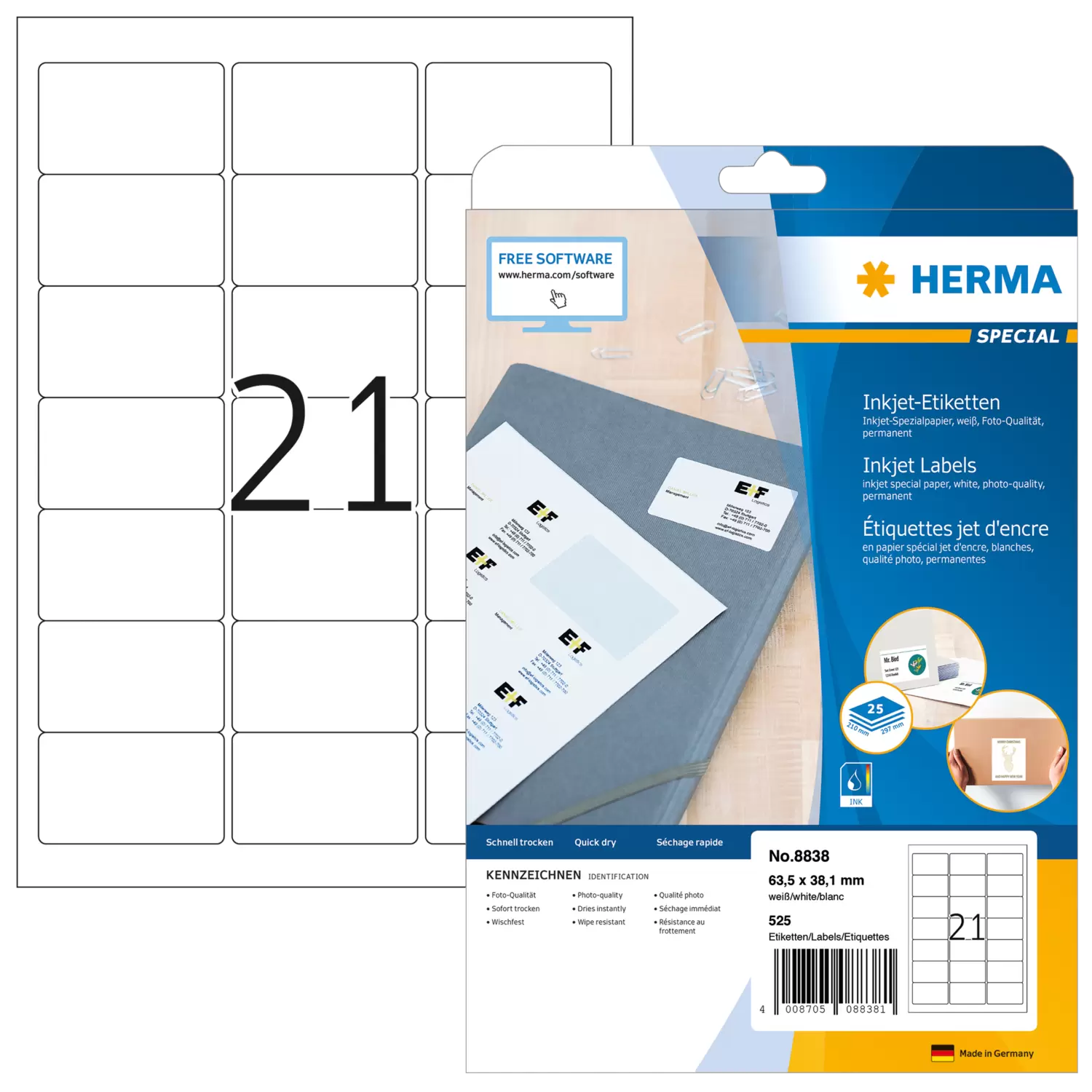 Inhalt 525 Etiketten / 25 Blatt