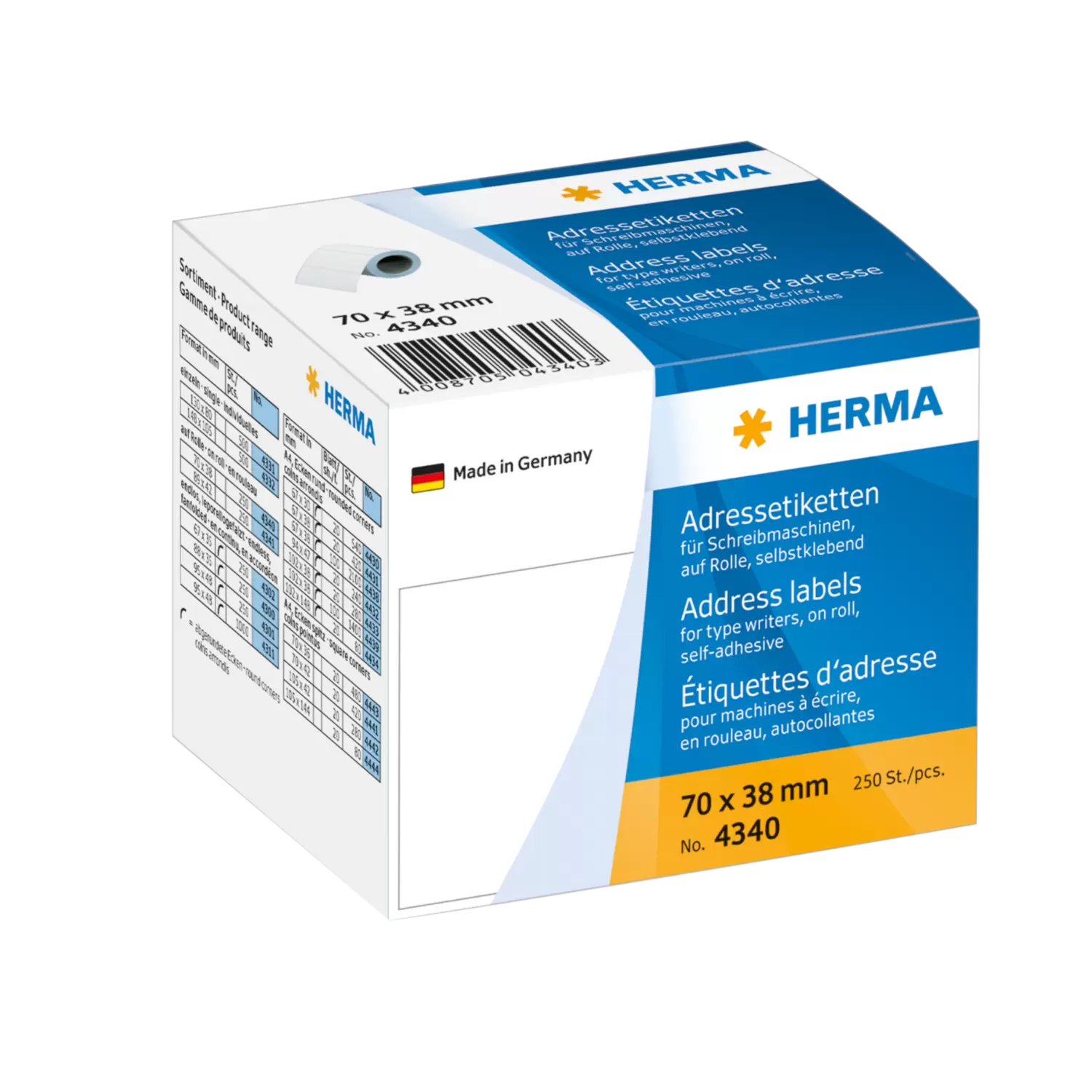 Adressetiketten für Schreibmaschinen, auf Rolle, 70 x 38 mm, weiß, permanent haftend