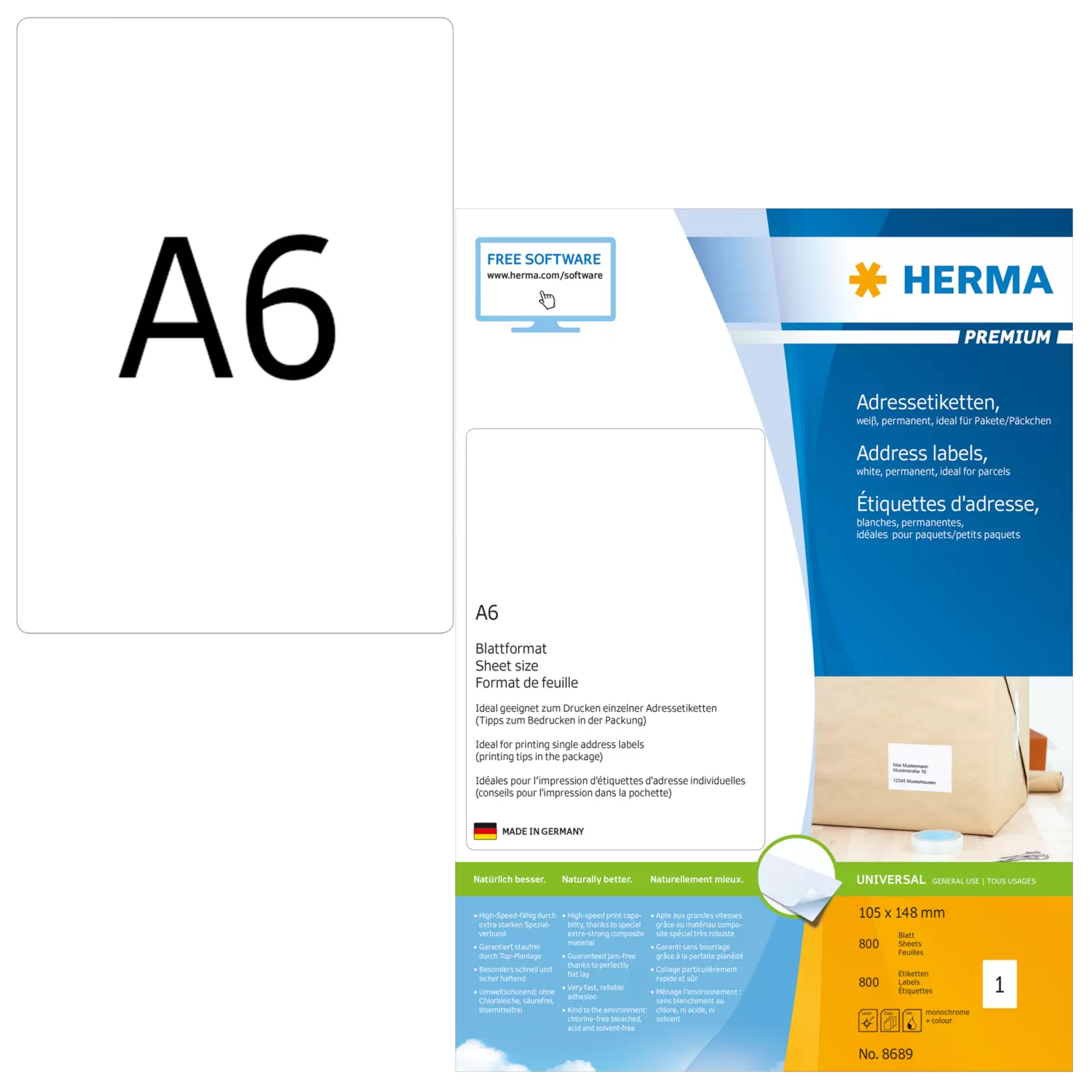 PREMIUM Adressetiketten, A6, 105 x 148 mm, weiß, permanent haftend