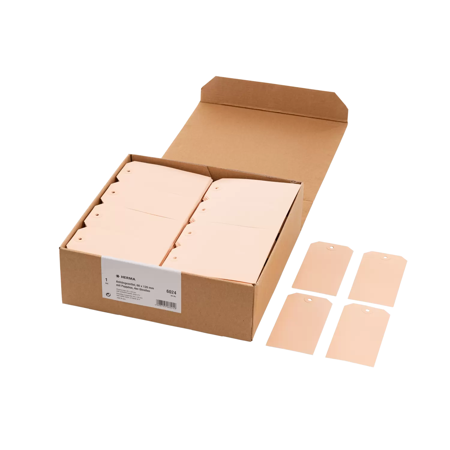 Anhängezettel 60 x 120 mm, 4er Streifen mit Pappöse