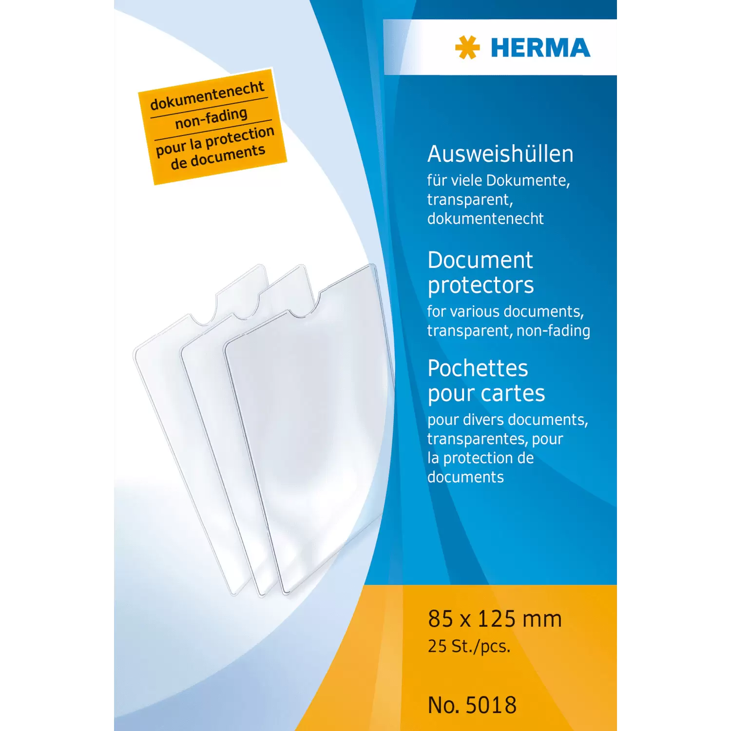Dokumente, Ausweise sowie Bank-, Kredit- und andere wichtige Karten sollten gut geschützt und sicher aufbewahrt werden. Die HERMA Steckhülle aus transparenter Polypropylen-Folie ist optimal für Dokumente und mehr im Format 85 x 125 mm geeignet. Die Hülle ist extrem strapazierfähig und robust, dokumentenecht, reißfest, geruchsfrei und schützt vor Nässe, Schmutz und Abnutzung, auch unterwegs im Geldbeutel, in der Hand- oder Hosentasche. Das ist HERMA Qualität Made in Germany.