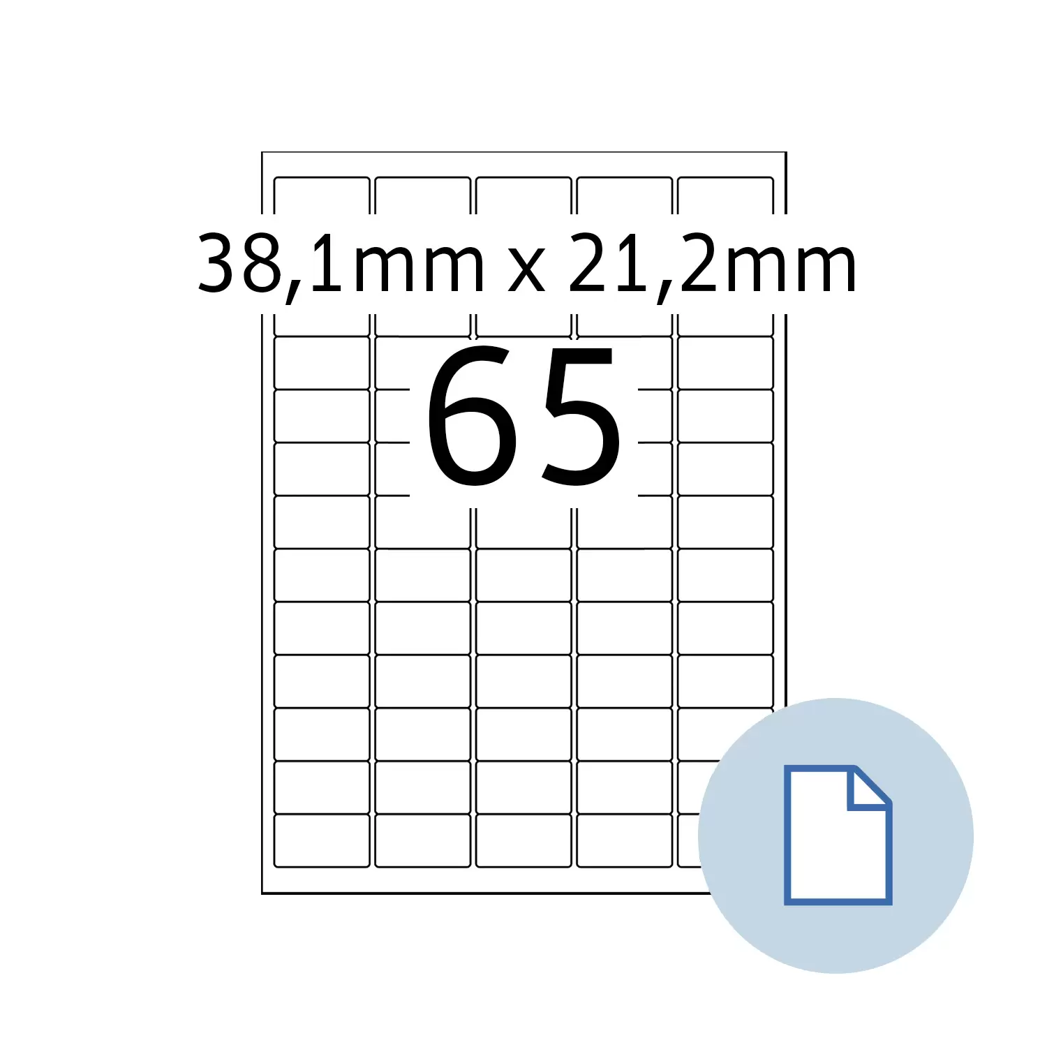 Blattetiketten A4, 8465, Papier weiß 38,1x21,2 mm, 500 Blatt/32.500 Etiketten
