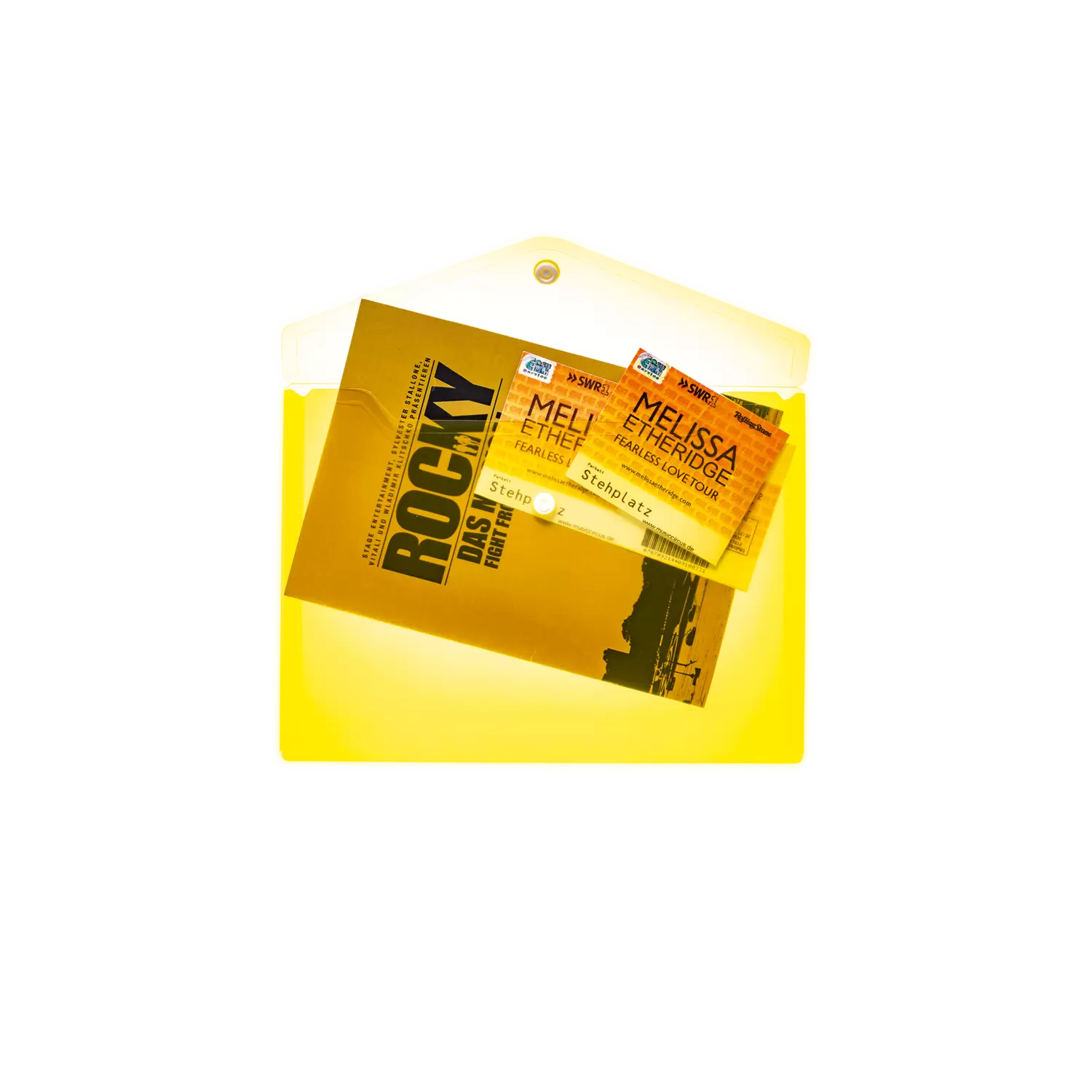 Die praktische HERMA Brieftasche im Format DIN A5 (25 x 18 cm) in gelb ist der vielfältige Ordnungshelfer für unterwegs, zu Hause, bei der Arbeit, in der Schule und vielem mehr. Die handliche Mappe ist aus robustem transparentem Polypropylen gefertigt und somit unempfindlich gegen Schmutz und Feuchtigkeit. So bleiben Quittungen, Briefe, Reiseunterlagen, Zeichnungen oder kleinere Utensilien sauber und ordentlich beisammen.