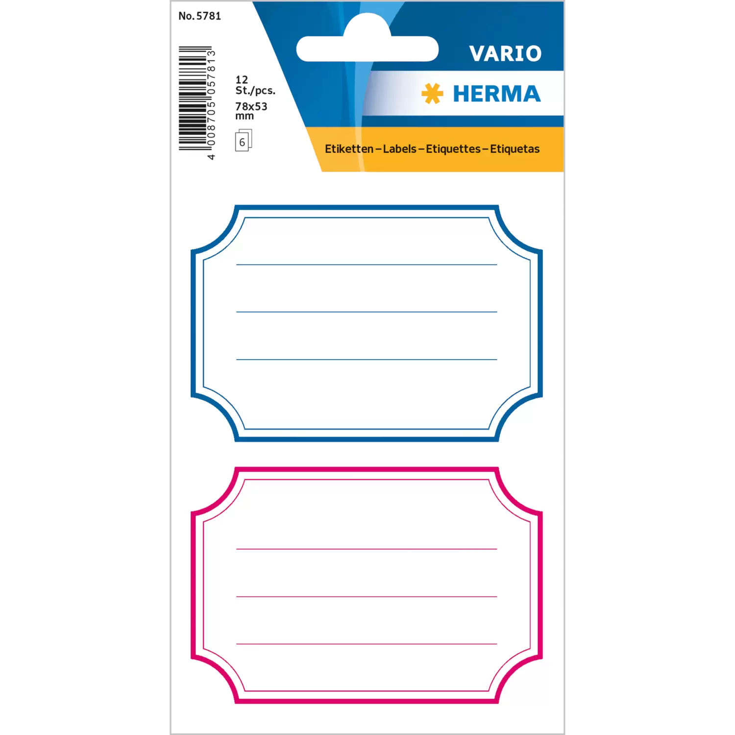 Schuletiketten neutral blau-roter Rand liniert 78x53 mm