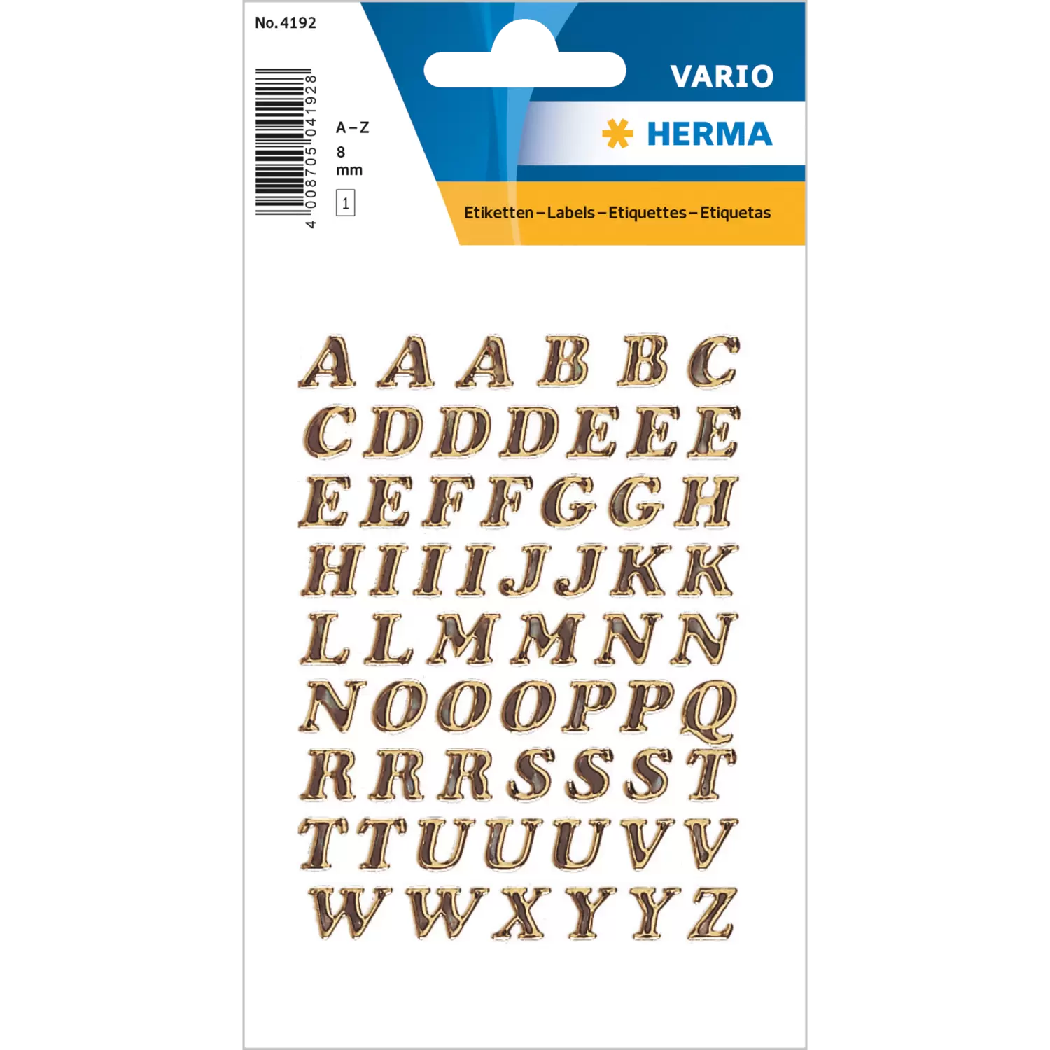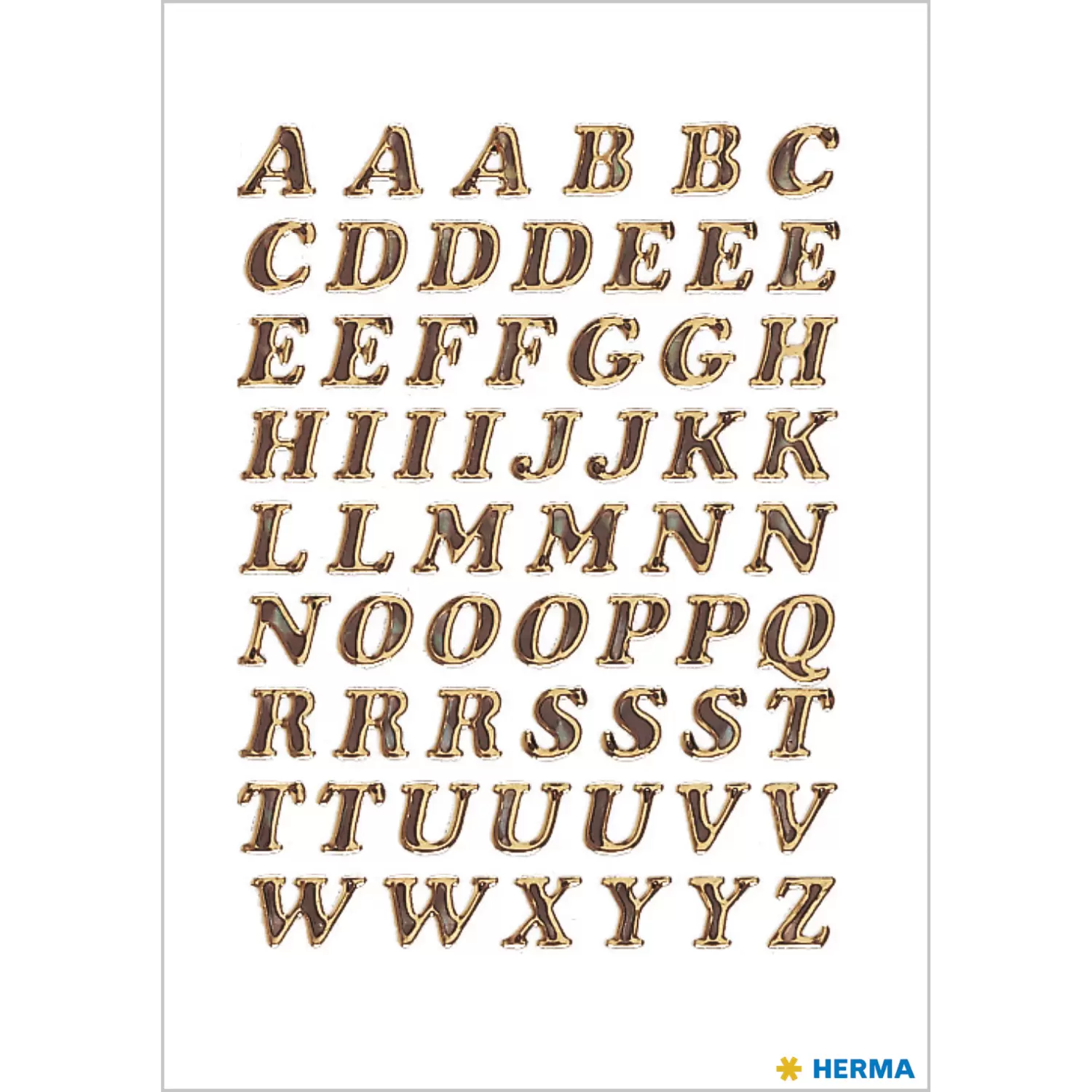 Diese goldenen, selbstklebenden Buchstaben mit Glitzereffekt sind ideal zur individuellen Beschriftung von Dokumenten oder Gegenständen im privaten und beruflichen Bereich. Mit den Buchstaben A-Z von HERMA aus Goldfolie lassen sich individuelle Kennzeichnungen und Verzierungen in unzähligen Anwendungsbereichen einfach und schnell umsetzen. Egal ob für Notizbücher, Kalender, Fotoalben oder Briefe: Die Prismaticfolie, aus der die Buchstaben hergestellt sind, sorgt in jedem Fall für eine einzigartige, edle Optik. Die glitzernden Aufkleber sind permanent haftend und punkten mit gewohnter HERMA-Qualität. In jeder Packung befinden sich die Buchstaben von A bis Z in mehrfacher Ausführung.