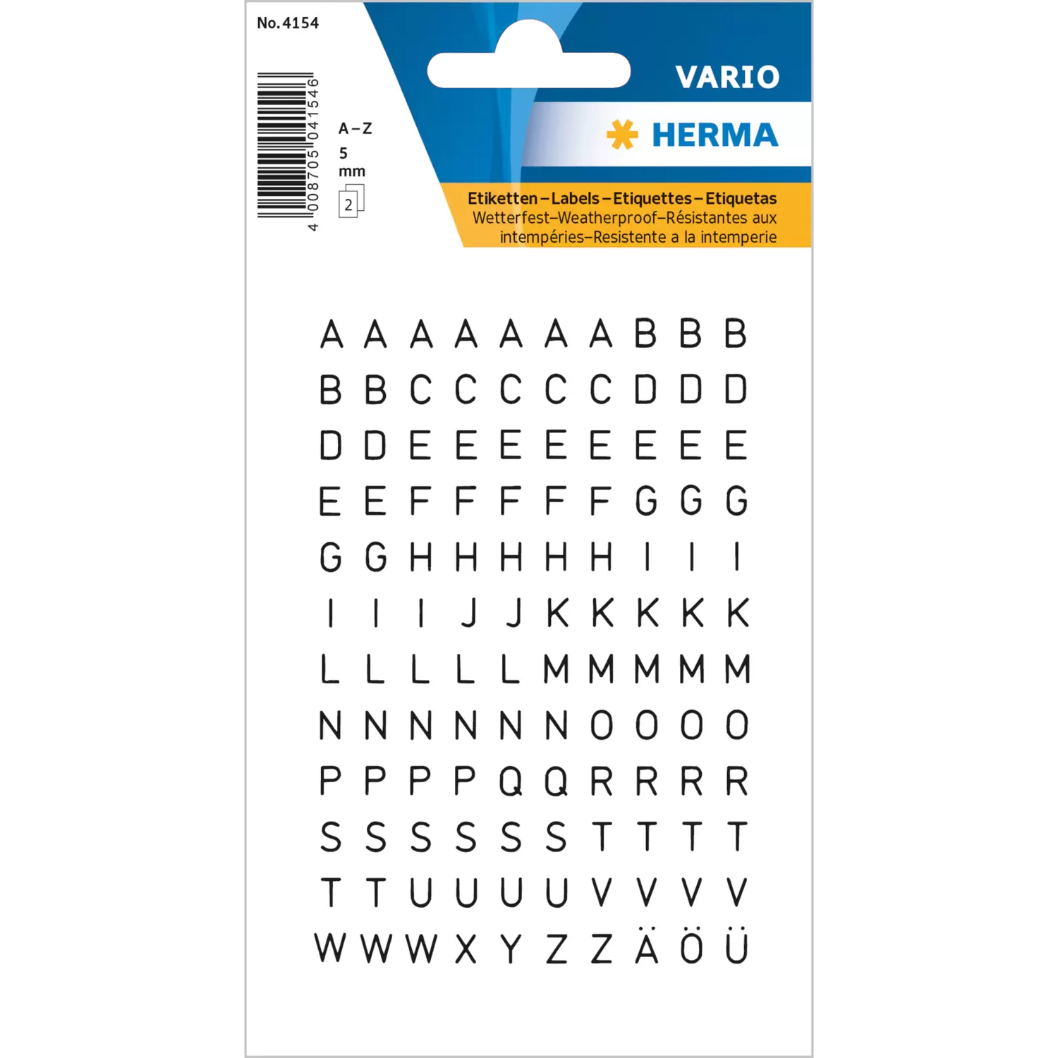Mit diesen selbstklebenden Buchstaben von A bis Z von HERMA ist man bestens für die Beschriftung, Kennzeichnung und Markierung von Gegenständen im privaten wie im beruflichen Bereich ausgerüstet. Die Aufkleber sind einfach und schnell anzuwenden und vielseitig einsetzbar. Mit ihnen können beispielsweise Dokumente, Akten, Aufbewahrungsboxen, Elektrogeräte oder Regale beschriftet werden. Durch die garantierte Wetterbeständigkeit können sie auch im Außenbereich verwendet werden. Daher lassen sich unter anderem auch Haustüren, Briefkästen, Schaufenster oder Garagen zuverlässig und ohne großen Aufwand kennzeichnen. Die Buchstaben-Aufkleber sind auf transparenter Folie gedruckt und haften permanent auf fettfreien und glatten Oberflächen wie Glas, Kunststoff oder Metall. Insgesamt sind 240 Sticker mit den Buchstaben von A-Z in mehrfacher Ausführung in einer Packung enthalten.