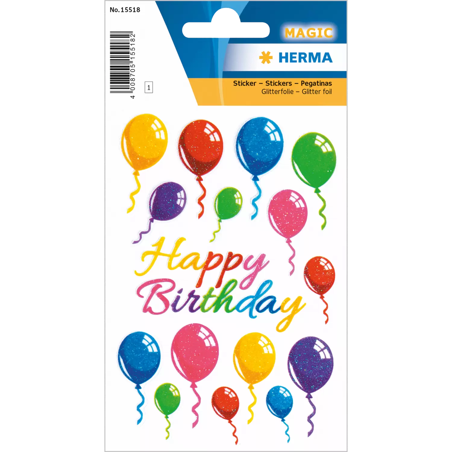 Für Geschenke zu besonderen Anlässen, wie z.B. Geburtstagen, lässt man sich gerne etwas Besonderes einfallen und gibt sich daher sehr viel Mühe bei der Verpackung oder der Dekoration. Hierfür sind die Sticker "Bunte Ballons" von HERMA absolut perfekt geeignet. Egal ob zum gestalten oder verschönern einer Geburtstagskarte, zum basteln eines Gutscheins oder zur Individualisierung einer Geschenkverpackung: Bei diesen farbenfrohen Stickern ist der Kreativität keine Grenzen gesetzt. Der Stickerbogen zeichnet sich vor allem durch die kräftigen Farben und die glitzernde Optik der Movie aus. Ein Bogen beinhaltet 15 Luftballons in verschiedenen Farben und Größen und einen bunten Schriftzug "Happy Birthday”. Die Sticker sind permanent haftend und selbstklebend, dadurch lassen sie sich einfach und schnell auf zahlreiche Oberflächen aufkleben.