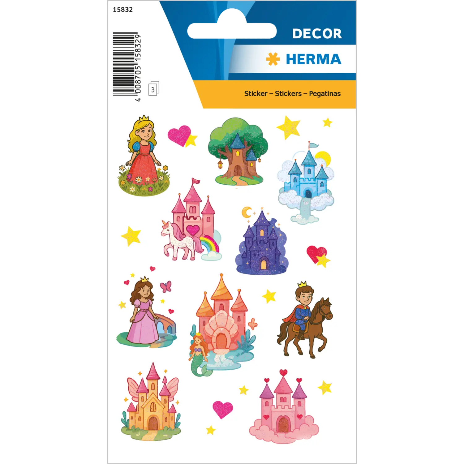 • Dekorative Papiersticker mit glitzernden Märchenschloss-Motiven