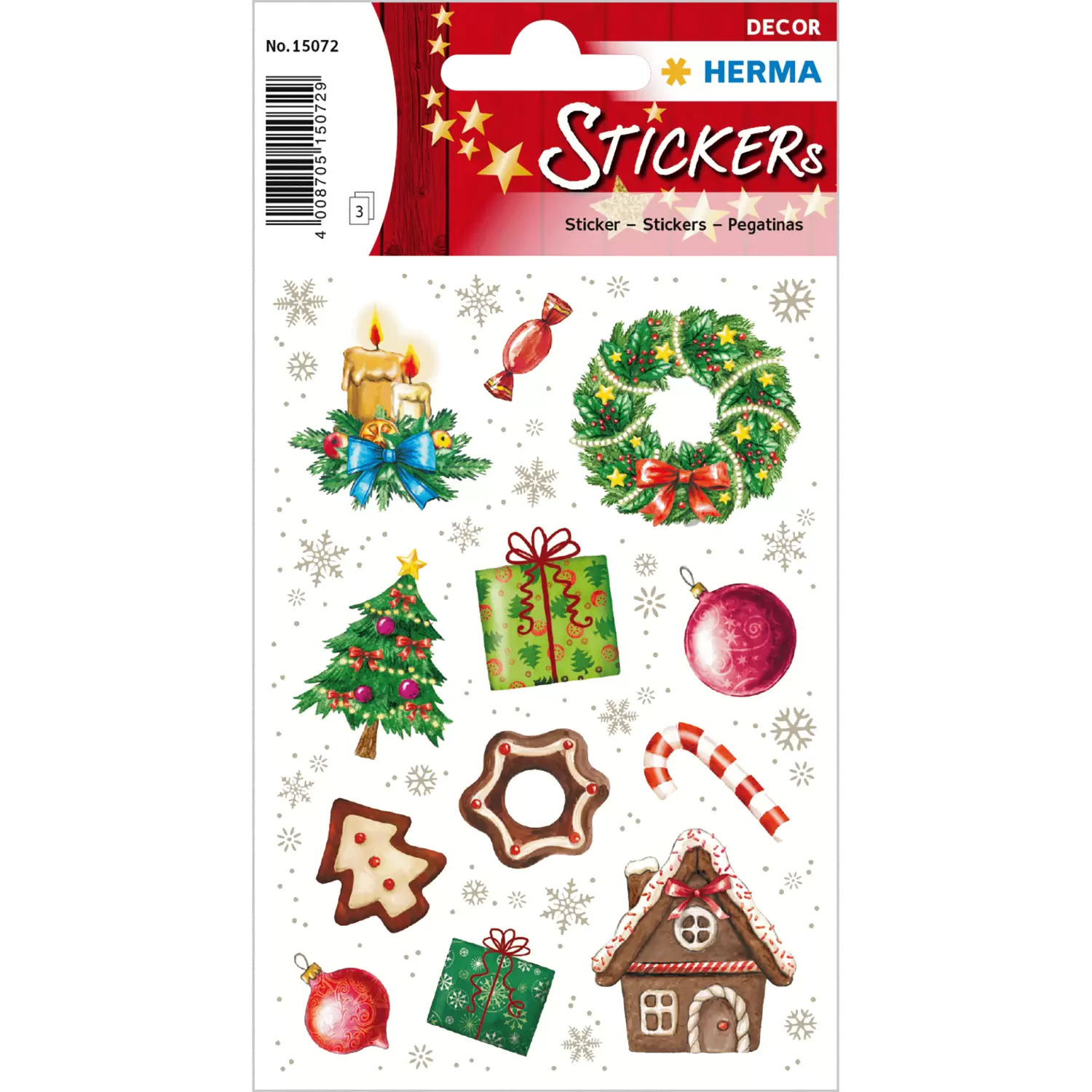 Eine Packung Sticker voller Weihnachtsklassiker: Mit diesen Stickern ist man zur Weihnachtszeit wirklich gut ausgestattet und es fehlt an nichts. Es bleiben keine Wünsche offen, da in dieser Packung wirklich alle Motive enthalten sind, die man an Weihnachten unbedingt benötigt. Vom Weihnachtsbaum über Kerzen bis hin zum Lebkuchenhaus sind viele Elemente der Weihnachtszeit dabei. Auch Geschenke, Weihnachtskugeln und ein Weihnachtskranz sind enthalten. Diese unterschiedlichen Weihnachtssticker können für verschiedene Zwecke angewendet werden. Sie können alltägliche Gegenstände in der Weihnachtszeit verschönern, auf Briefen oder Geschenken tolle Akzente setzen und als tolle Dekoration auf dem Adventskalender dienen. Auch auf Karten oder der Weihnachtspost machen sich die Aufkleber besonders gut und können hier für weihnachtliche Vorfreude sorgen. In einer Verpackung sind 3 Blatt mit jeweils 12 Stickern enthalten, sodass insgesamt 36 Aufkleber zur Verfügung stehen.