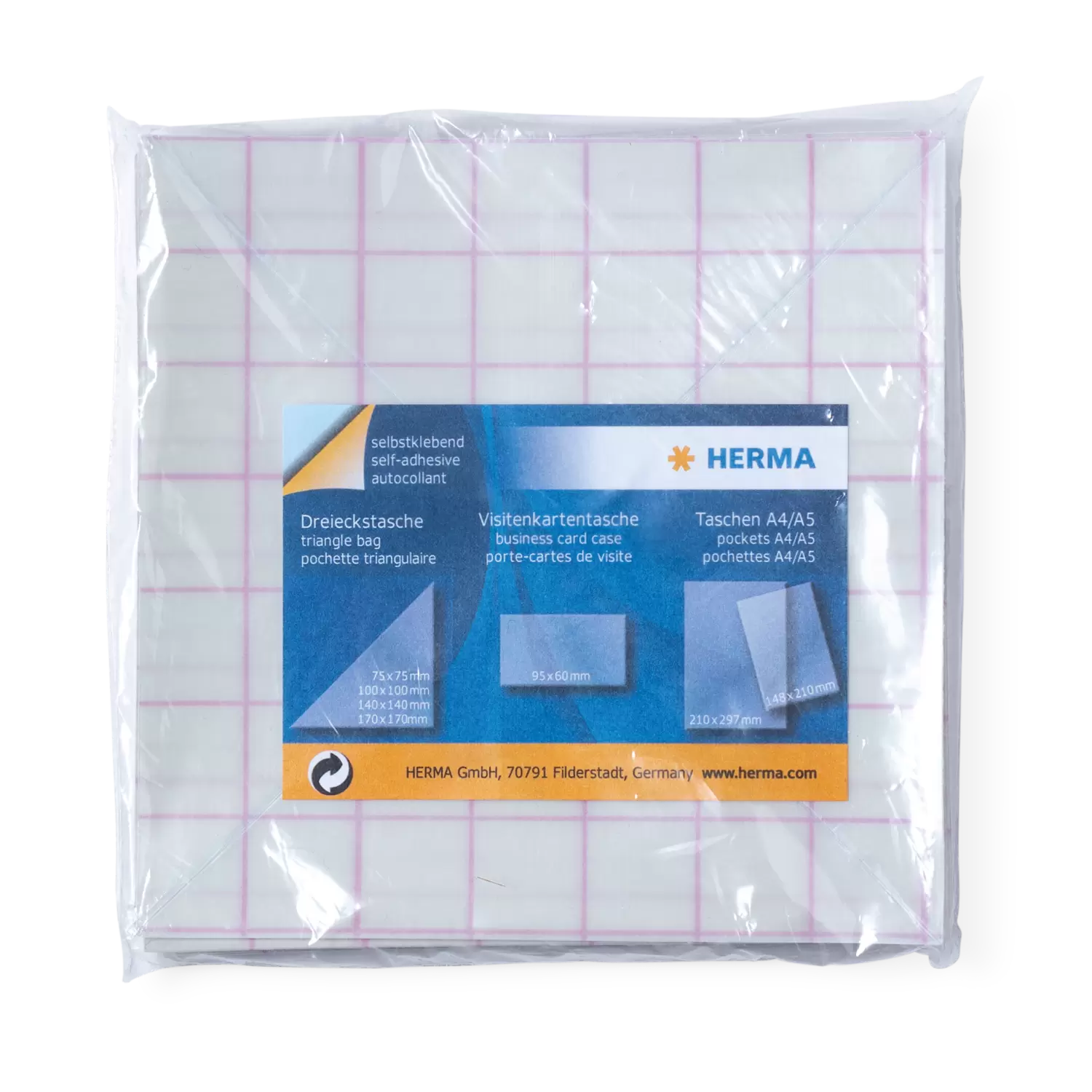 - Selbstklebende Dreieckstaschen im Format 100 x 100 mm