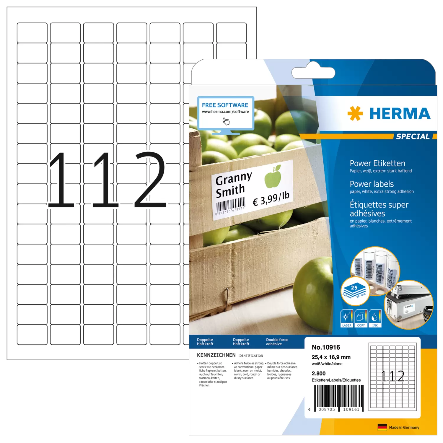 - Haften doppelt so stark wie herkömmliche Papieretiketten, auch auf z. B. feuchten, warmen, kalten, rauen oder staubigen Oberflächen, im Innenbereich