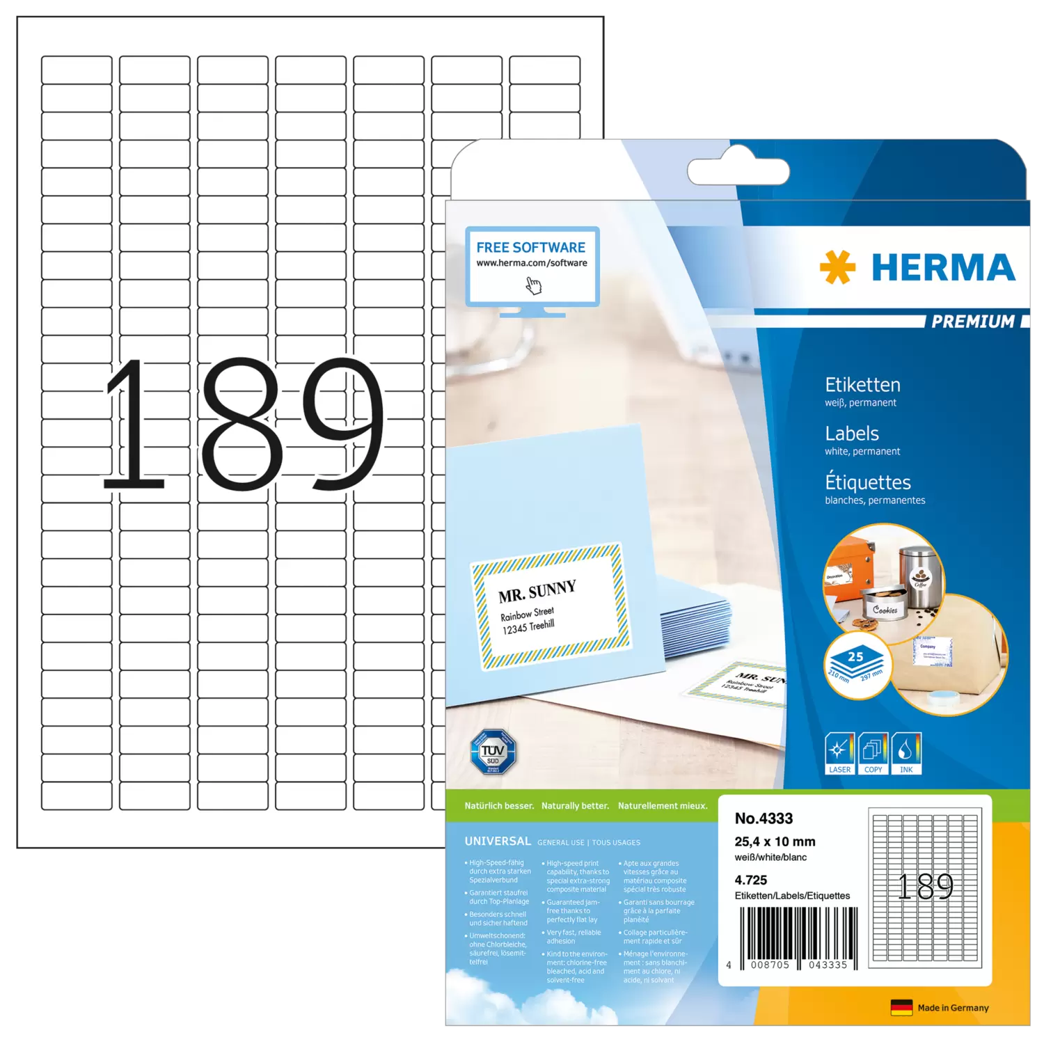 PREMIUM Etiketten A4, 25,4 x 10 mm, weiß, permanent haftend