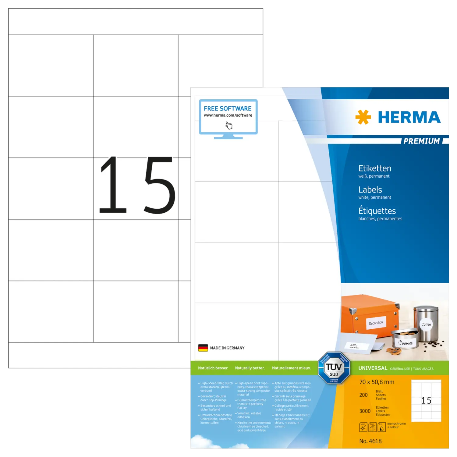 PREMIUM Etiketten A4, 70 x 50,8 mm, weiß, permanent haftend