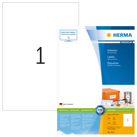 PREMIUM Etiketten A4, 210 x 297 mm, weiß, permanent haftend
