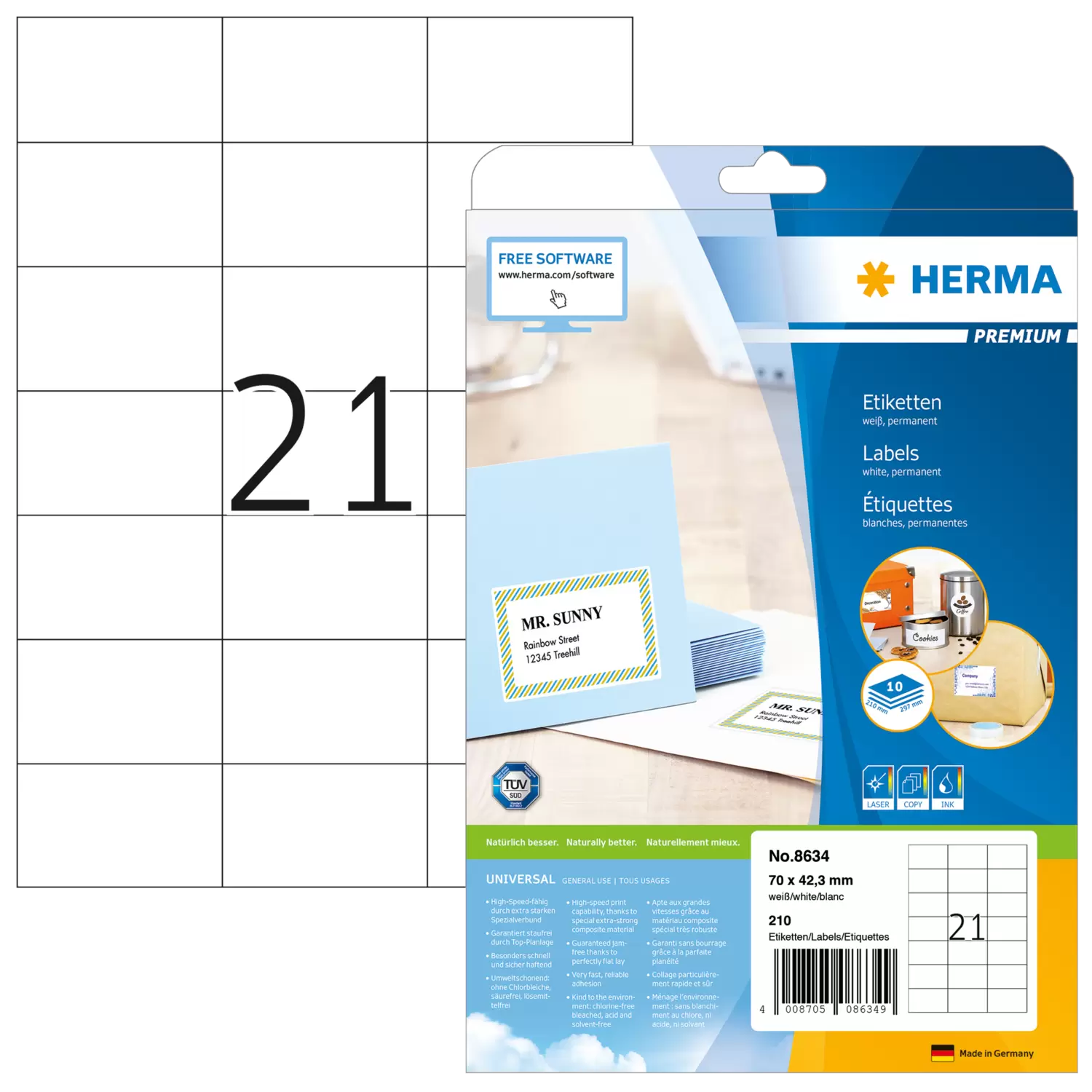 PREMIUM Etiketten A4, 70 x 42,3 mm, weiß, permanent haftend