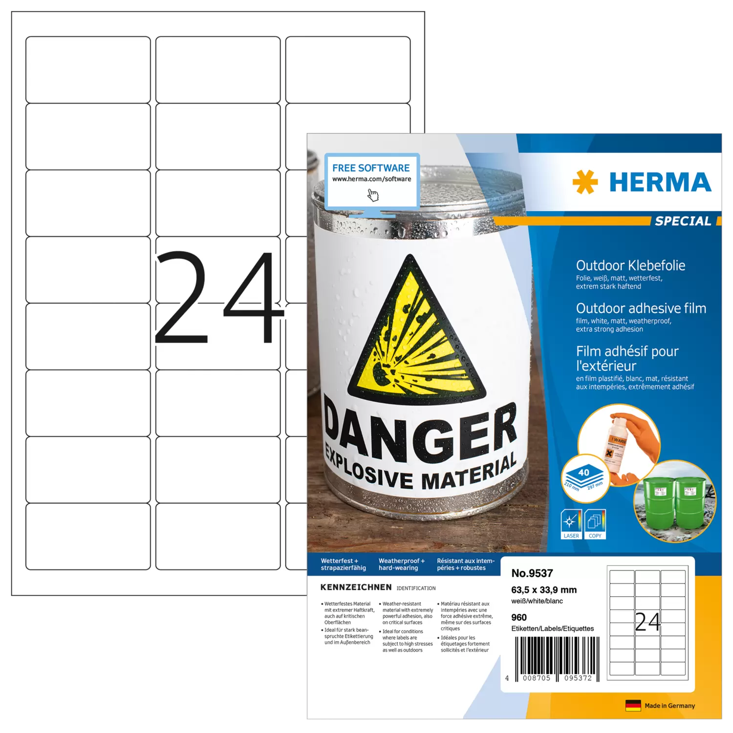 Wetterfeste Outdoor-Folienetiketten A4, 63,5 x 33,9 mm, weiß, extrem stark haftend, dehnfähig