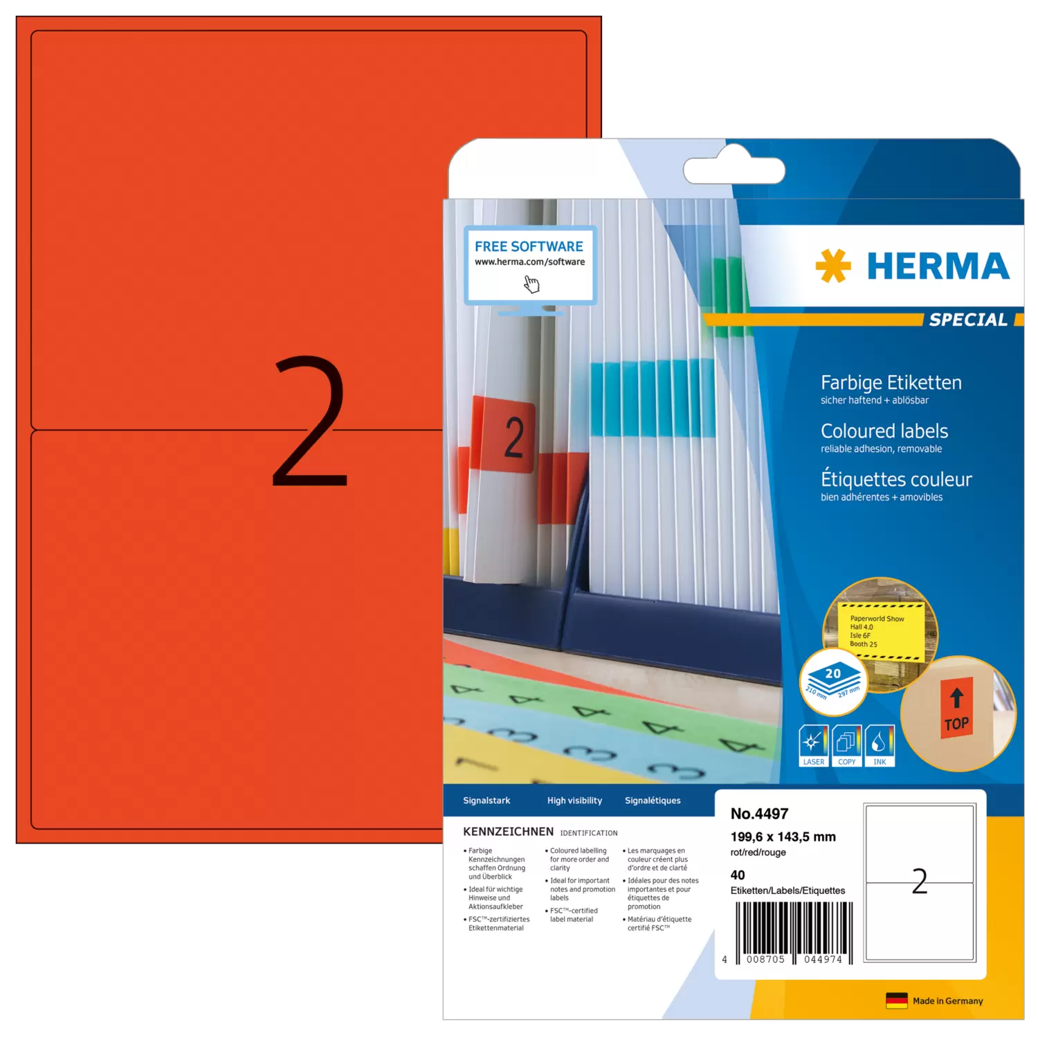 Farbige Etiketten A4, 199,6 x 143,5 mm, rot, ablösbar
