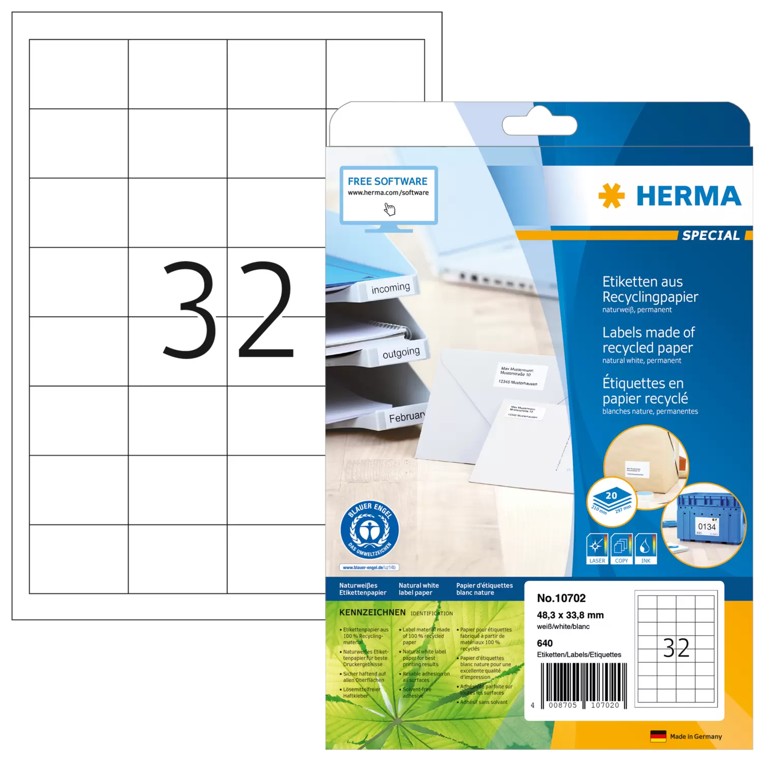 Etiketten aus Recyclingpapier A4, 48,3 x 33,8 mm, weiß, permanent haftend