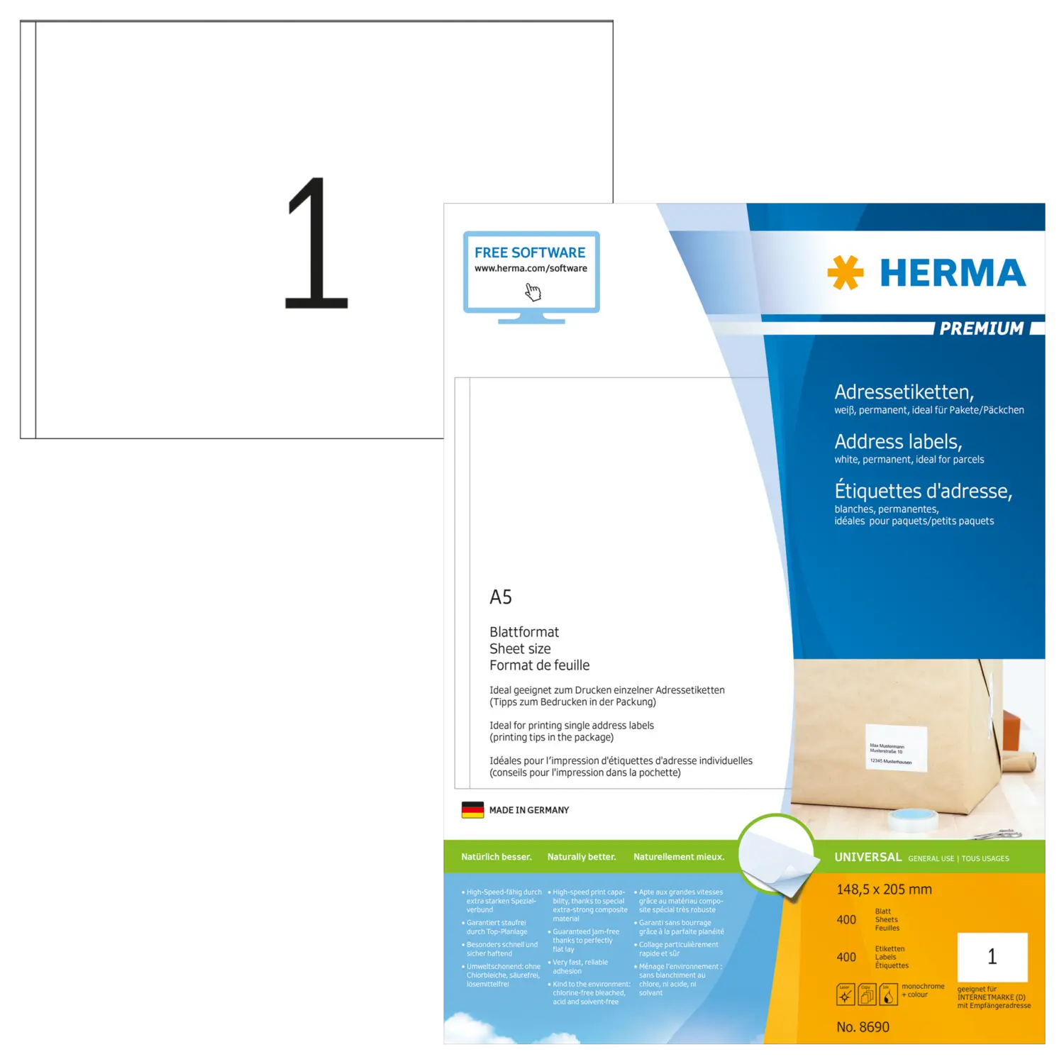 PREMIUM Adressetiketten, A5, 148,5 x 205 mm, weiß, permanent haftend
