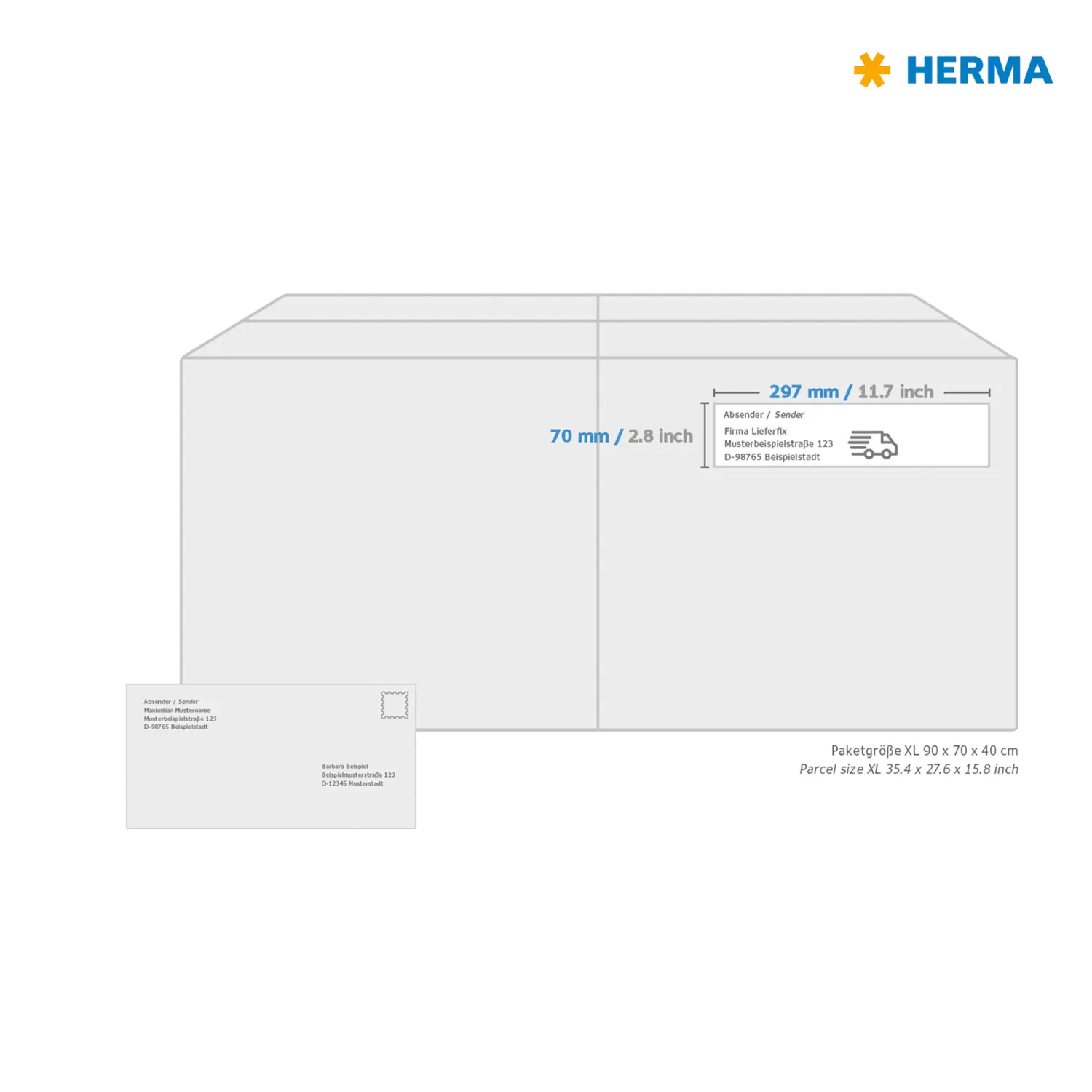 Selbstklebende Etiketten auf A4-Blättern, permanent haftend. Perfekt für alle Laser- und Inkjetdrucker, Kopierer, Farblaserdrucker und Farbkopierer. Garantiert staufrei und high-speed-fähig durch extra starken Spezialverbund, Top-Planlage und Rundum-Sicherheitskante. Problemloser Druckerdurchlauf für Laserdrucker und Inkjetdrucker getestet und bestätigt durch den TÜV SÜD. Hoher Weißegrad und gleichmäßige Oberfläche für beste Druckergebnisse in Schwarz und Farbe. Spürbar dicker: extra starke Etiketten, einfaches Aufkleben. Besonders schnell und sicher haftend, auch auf kühlen und feuchten Oberflächen. Umweltschonend und nachhaltig: chlorfrei gebleicht, FSC® Mix Credit-zertifiziert, lösemittelfreier Haftkleber. Etikettenmaterial recyclingfähig mit dem Altpapier, Trägerpapier mit dem Restmüll entsorgen, Verpackung aus Recyclingkarton. Kostenlose Softwarelösungen: www.herma.de/software.