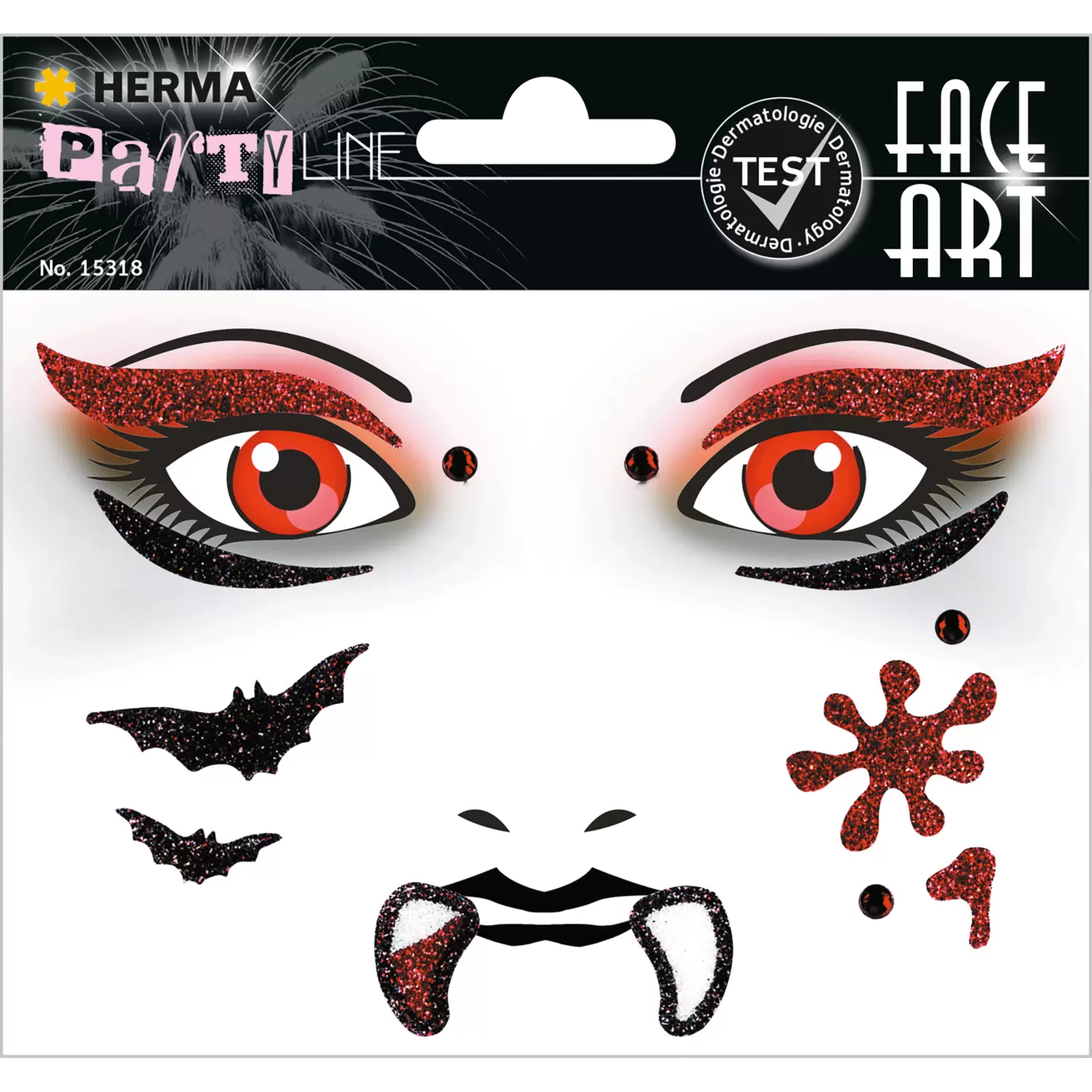 Motivsticker für das Gesicht. Geeignet für verschiedene Anlässe wie z.B. Fasching, Geburtstage oder Halloween.