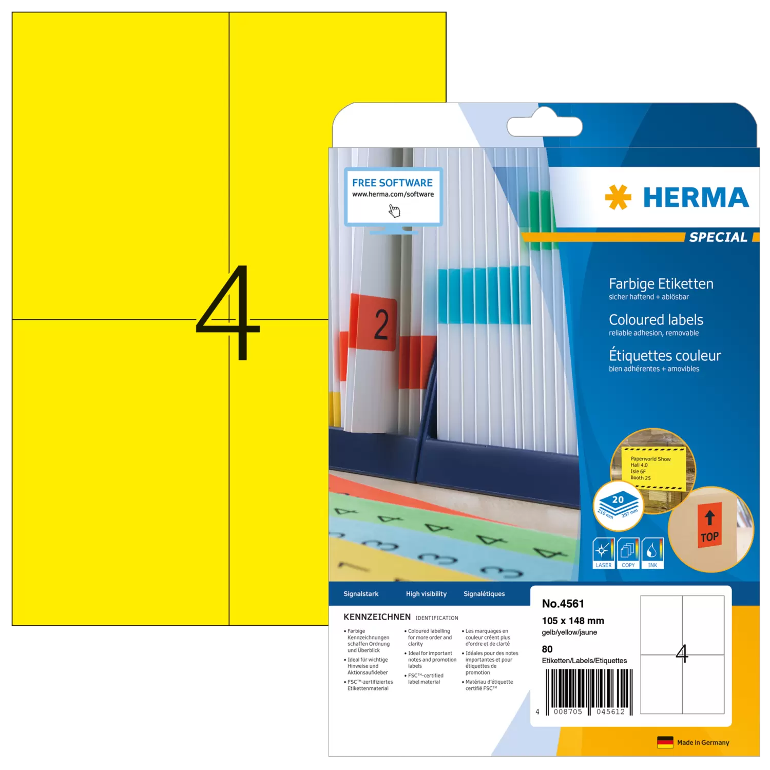 Farbige Etiketten A4, 105 x 148 mm, gelb, ablösbar