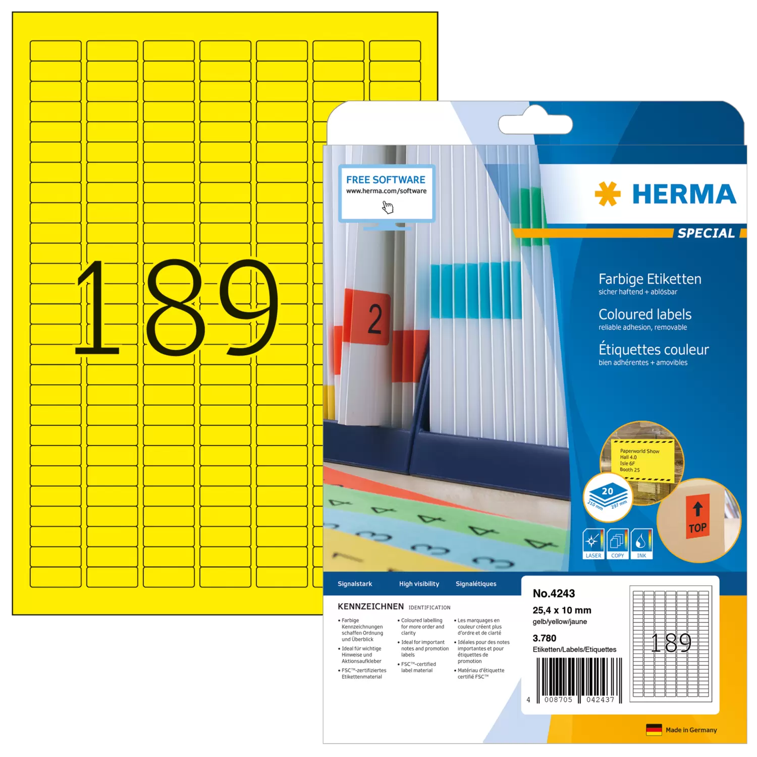 Farbige Etiketten A4, 25,4 x 10 mm, gelb, ablösbar