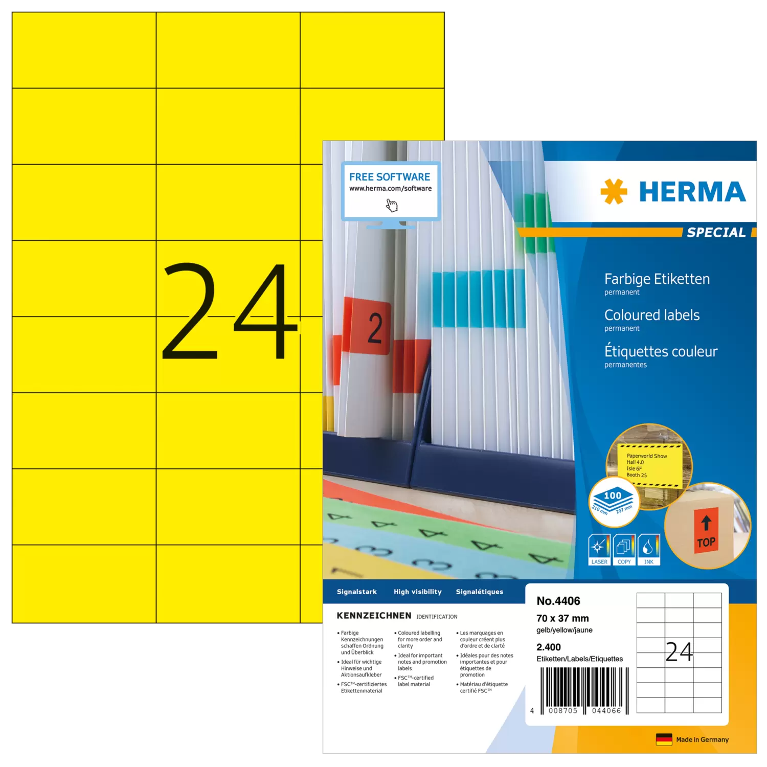 Farbige Etiketten A4, 70 x 37 mm, gelb, permanent haftend