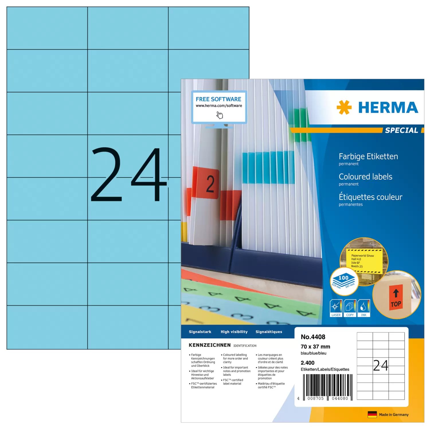 Farbige Etiketten A4, 70 x 37 mm, blau, permanent haftend