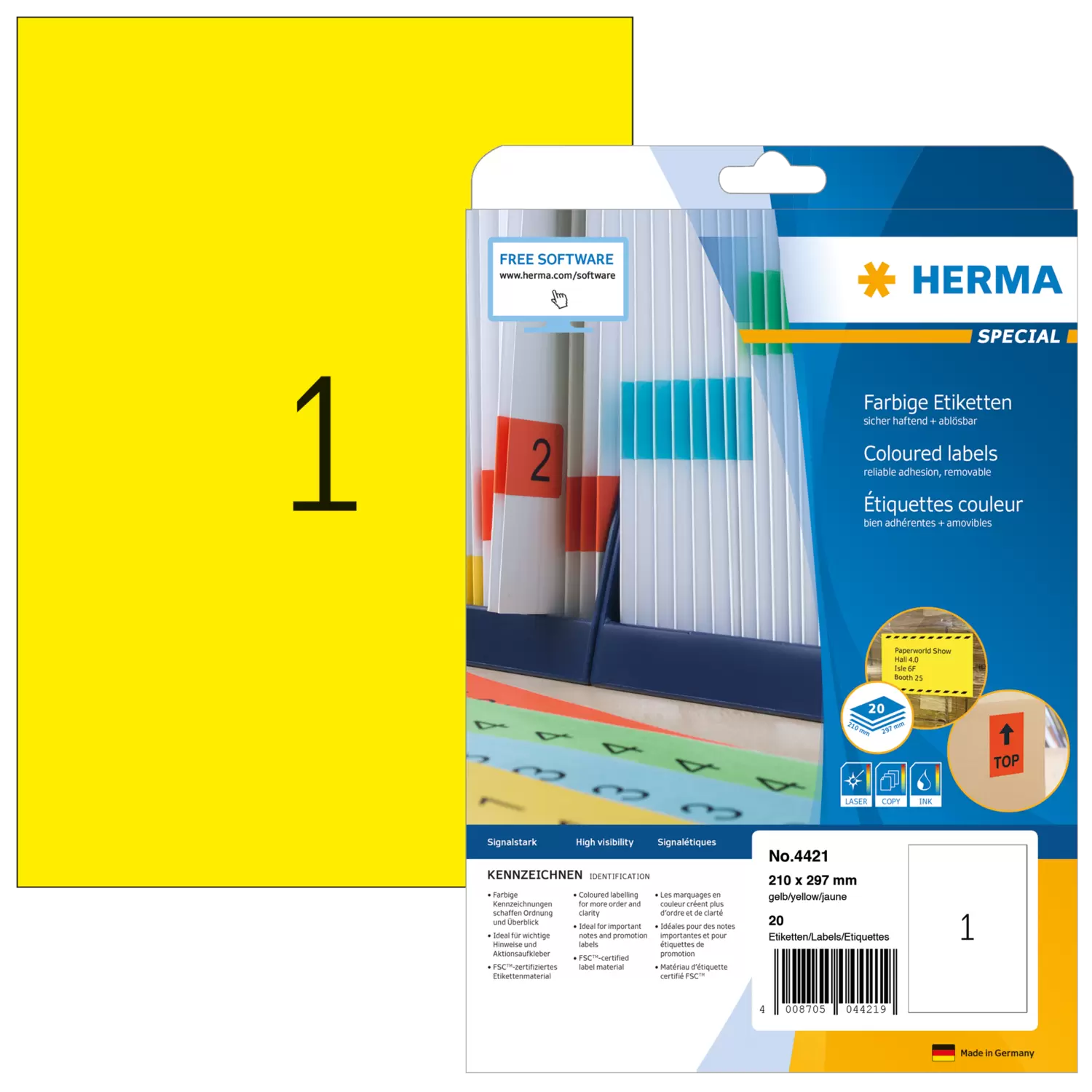 Farbige Etiketten A4, 210 x 297 mm, gelb, ablösbar