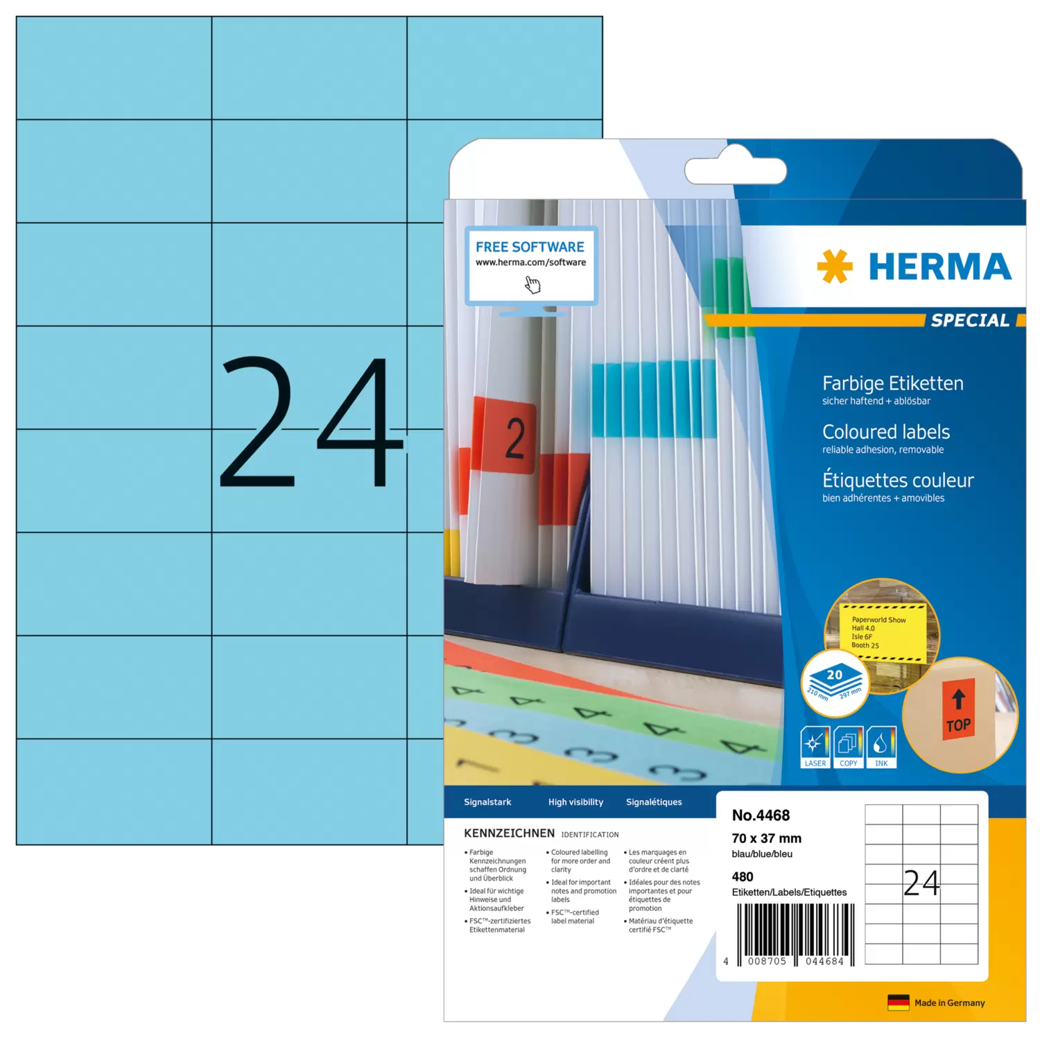 Farbige Etiketten A4, 70 x 37 mm, blau, ablösbar