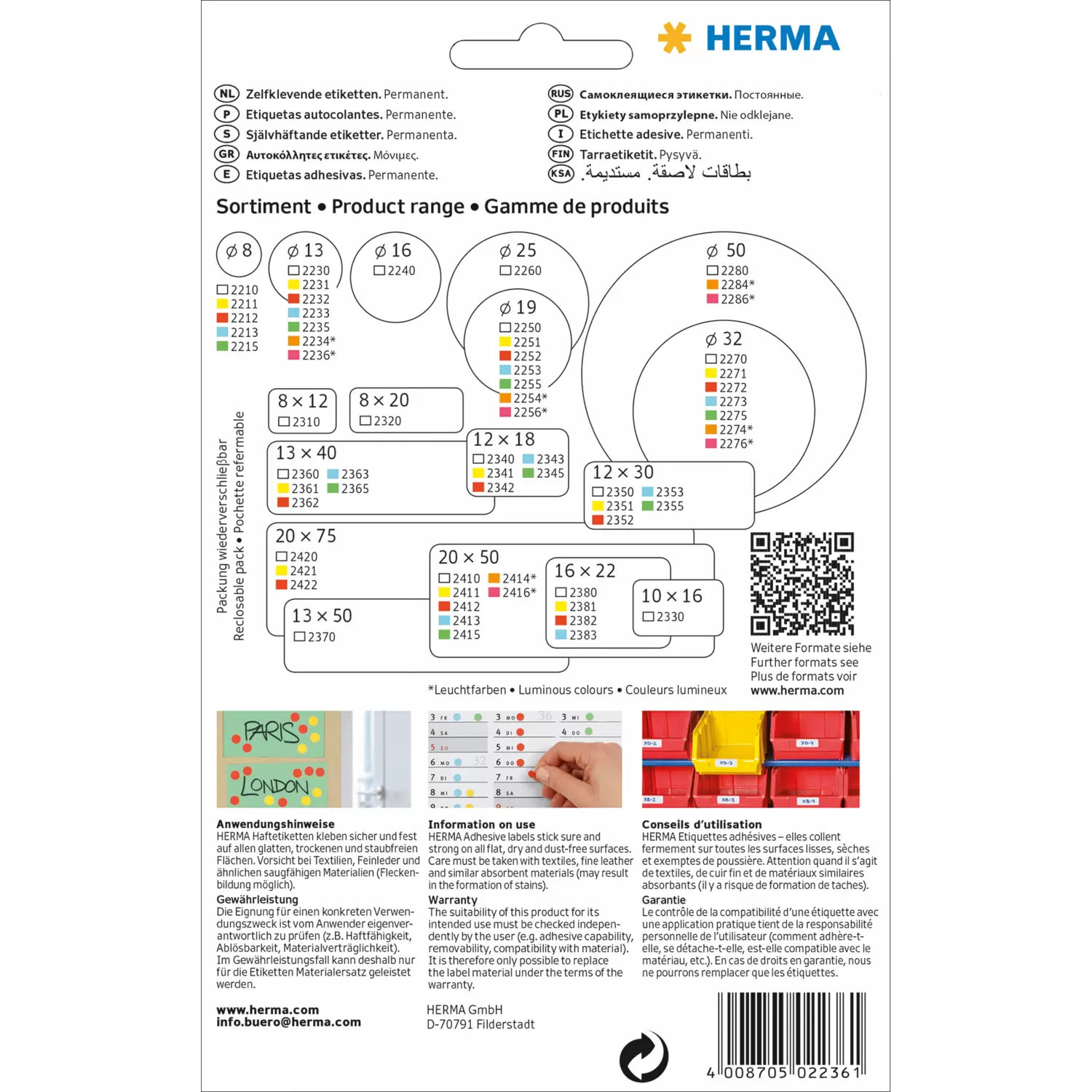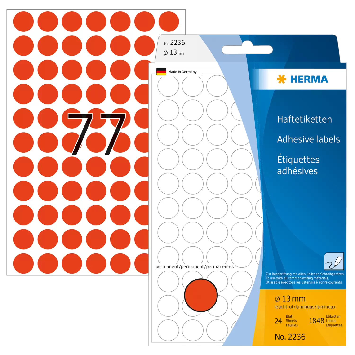 Vielzwecketiketten/Farbpunkte Ø 13 mm, rund, leuchtrot, permanent haftend, zur Handbeschriftung