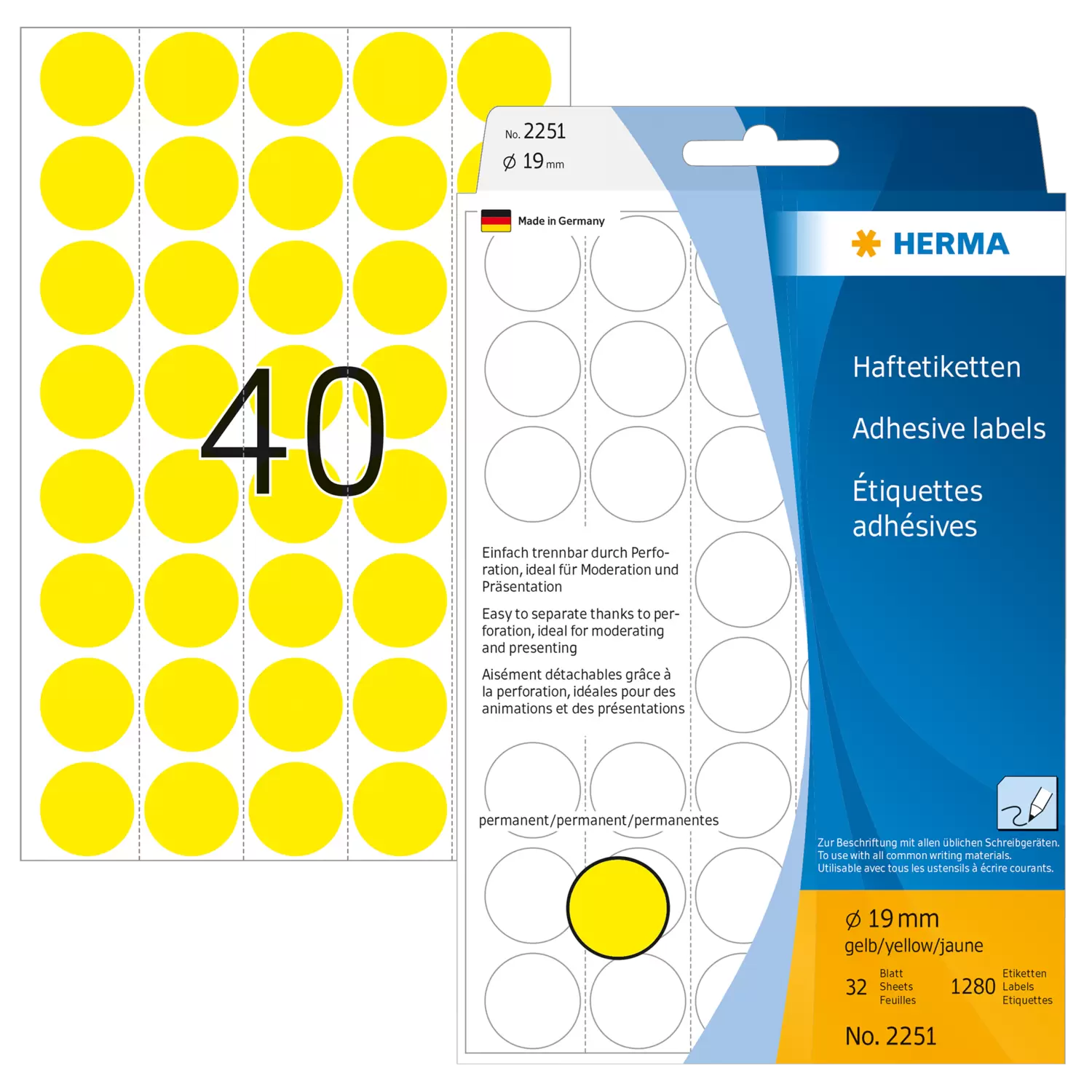 Vielzwecketiketten/Farbpunkte Ø 19 mm, rund, gelb, permanent haftend, zur Handbeschriftung
