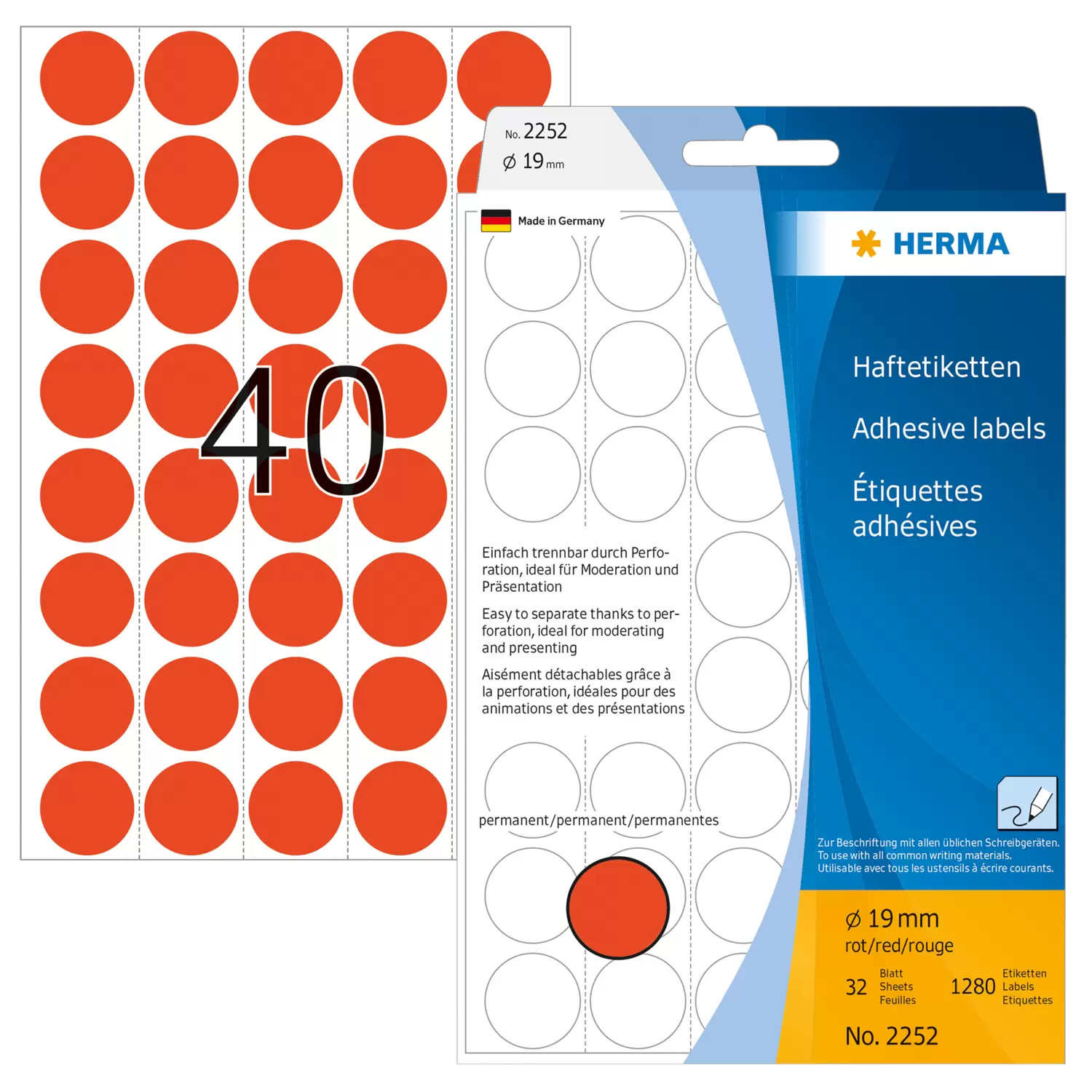 Vielzwecketiketten/Farbpunkte Ø 19 mm, rund, rot, permanent haftend, zur Handbeschriftung
