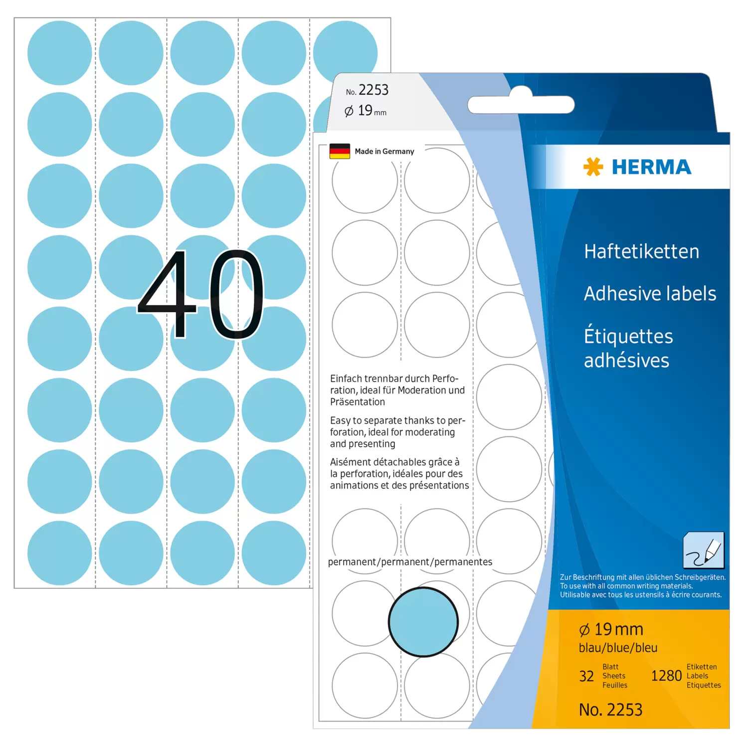 Vielzwecketiketten/Farbpunkte Ø 19 mm, rund, blau, permanent haftend, zur Handbeschriftung
