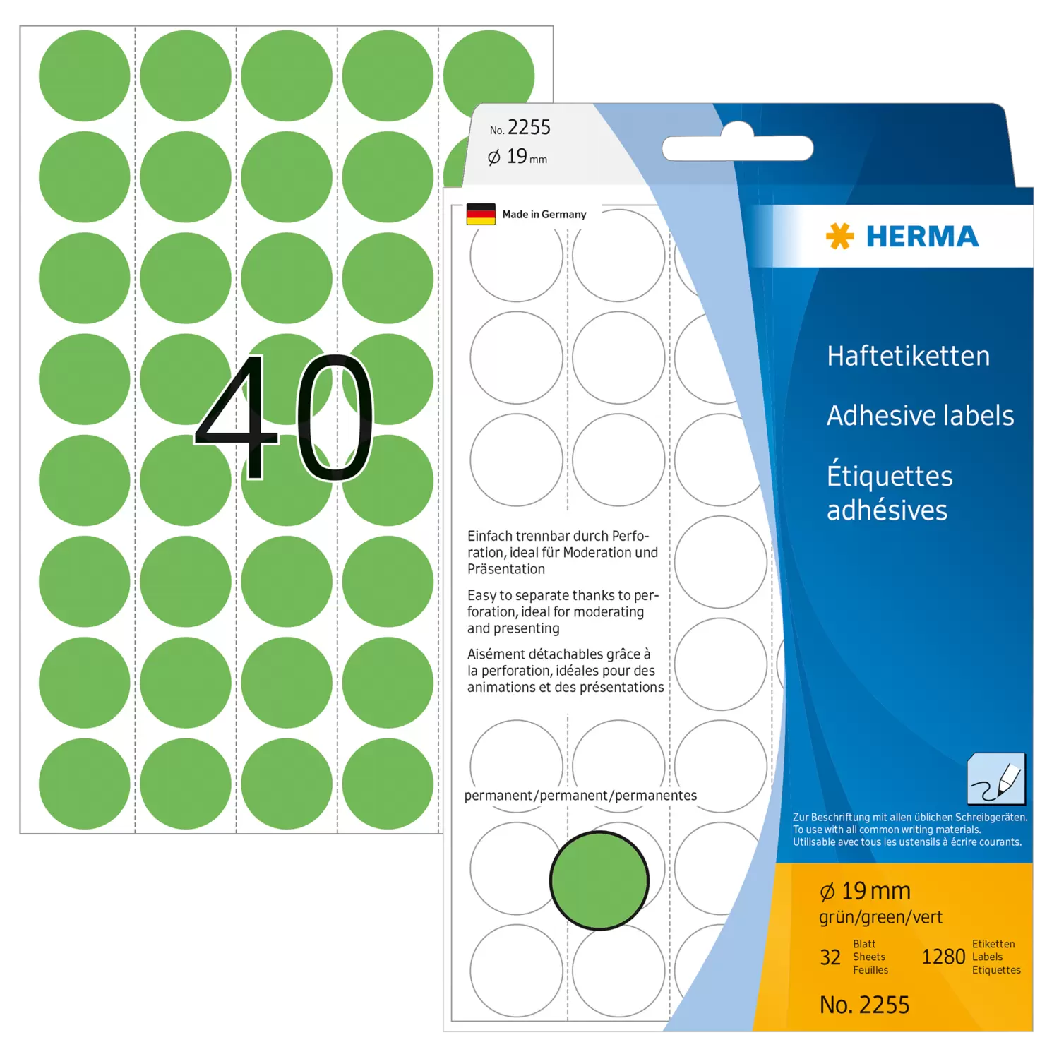 Vielzwecketiketten/Farbpunkte Ø 19 mm, rund, grün, permanent haftend, zur Handbeschriftung