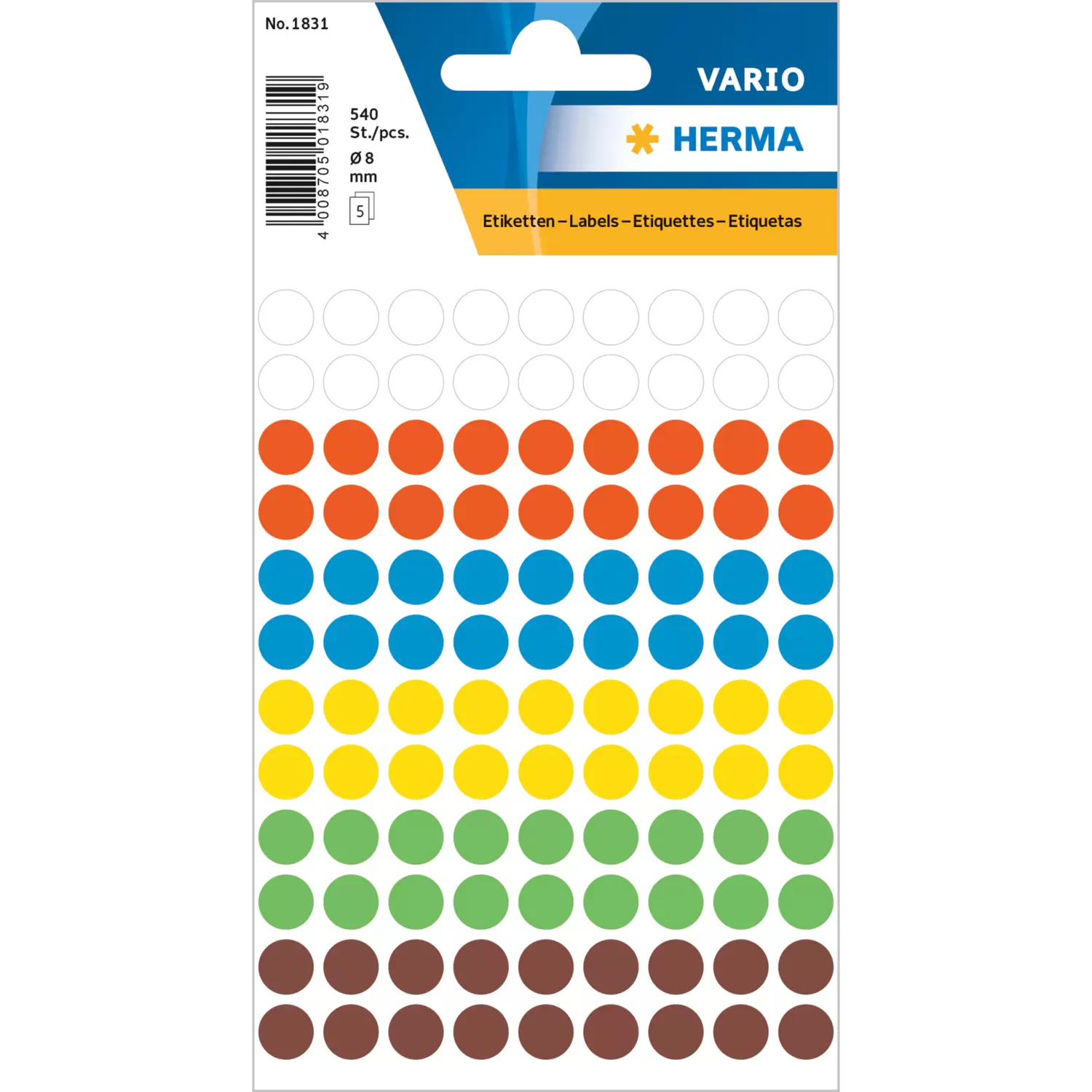 Vielzwecketiketten/Farbpunkte Ø 8 mm, rund, farbig sortiert, permanent haftend, zur Handbeschriftung