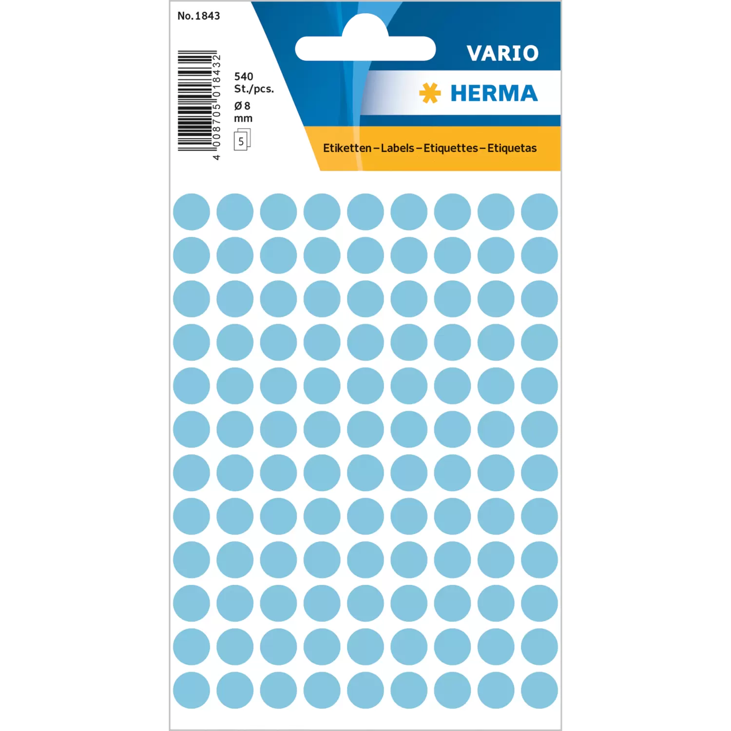 Vielzwecketiketten/Farbpunkte Ø 8 mm, rund, blau, permanent haftend, zur Handbeschriftung