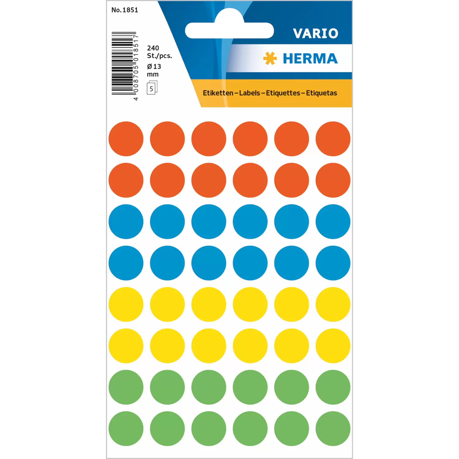 Vielzwecketiketten/Farbpunkte Ø 13 mm, rund, farbig sortiert, permanent haftend, zur Handbeschriftun