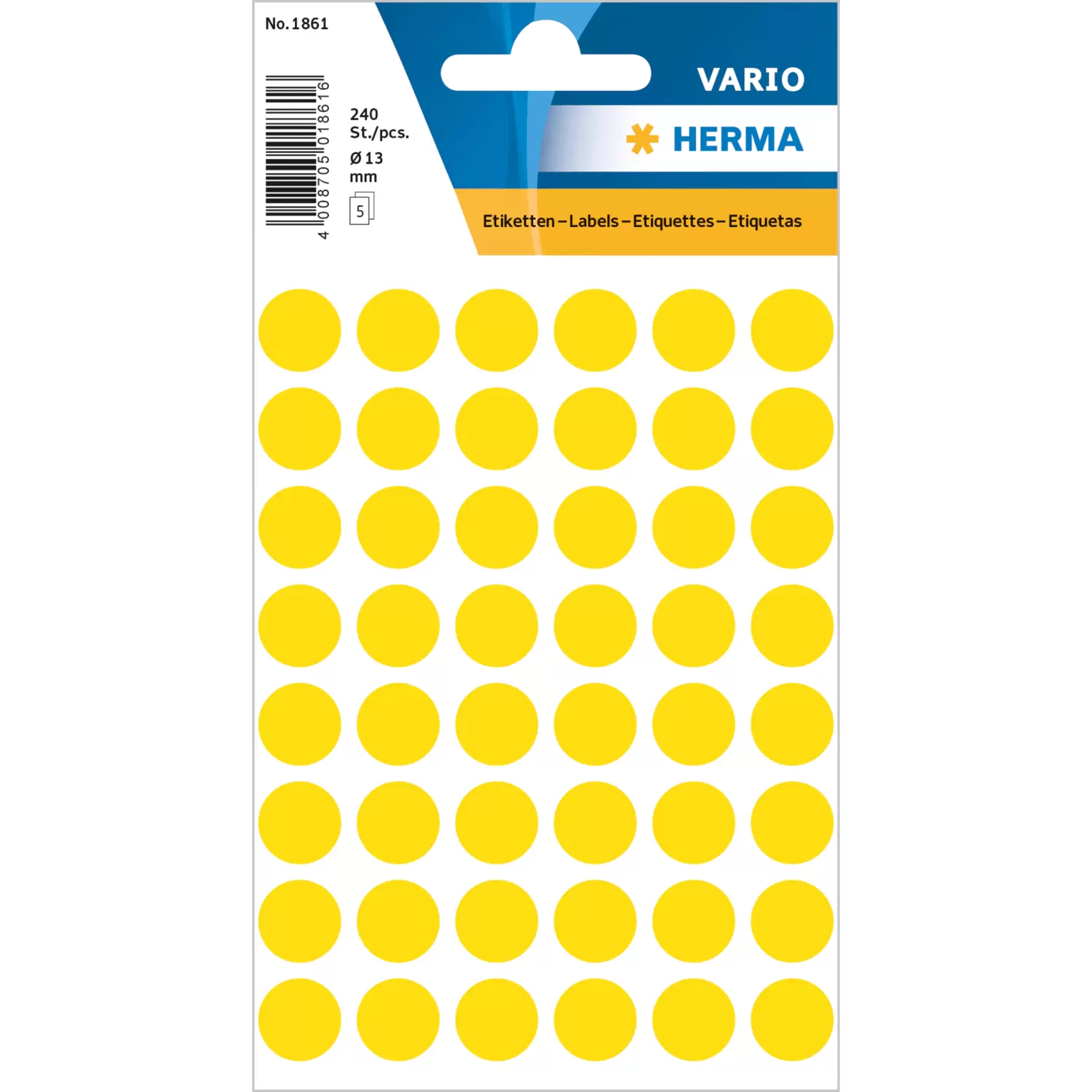 Vielzwecketiketten/Farbpunkte Ø 13 mm, rund, gelb, permanent haftend, zur Handbeschriftung