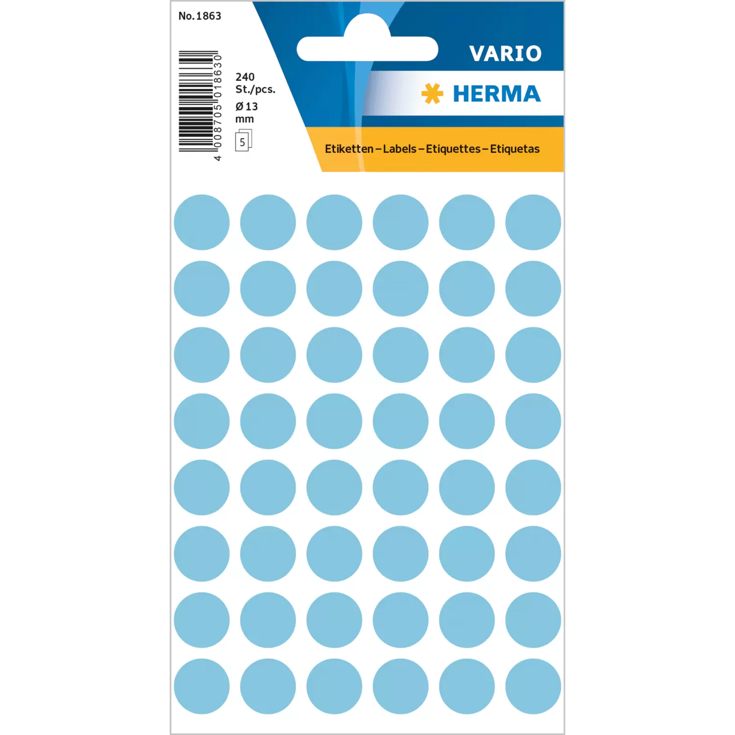 Vielzwecketiketten/Farbpunkte Ø 13 mm, rund, blau, permanent haftend, zur Handbeschriftung