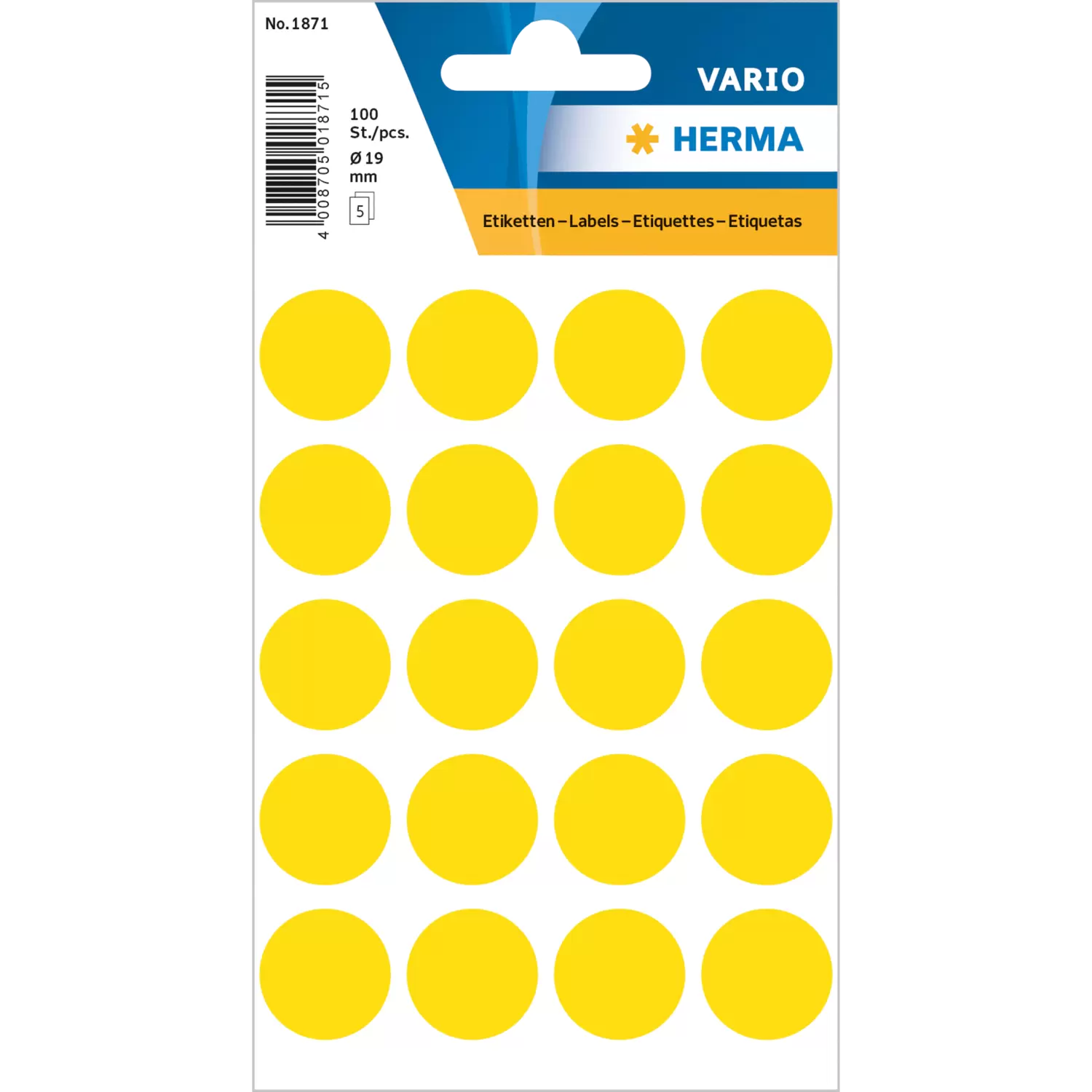 Die Vario Farbpunkte von HERMA in gelb können in vielen Bereichen des privaten und geschäftlichen Lebens unterstützend eingesetzt werden und eine Vielzahl von Tätigkeiten erleichtern. Für schnelle Notizen, Markierungen und eine bessere Organisation sind die Vielzwecketiketten ideal. Bei der Inventur, bei Meetings, Brainstormings oder Lieferungen können sie sehr hilfreich sein. Die Anwendung der selbstklebenden Farbpunkte ist dabei genauso schnell wie einfach, denn Sie können mit jedem herkömmlichen Schreibgerät von Hand beschriftet werden. Farbpunkte von HERMA haften permanent und sind zusätzlich umweltfreundlich, da sie aus chlorfrei gebleichtem Spezialpapier Zellstoff werden und der verwendete Haftkleber lösemittelfrei ist.