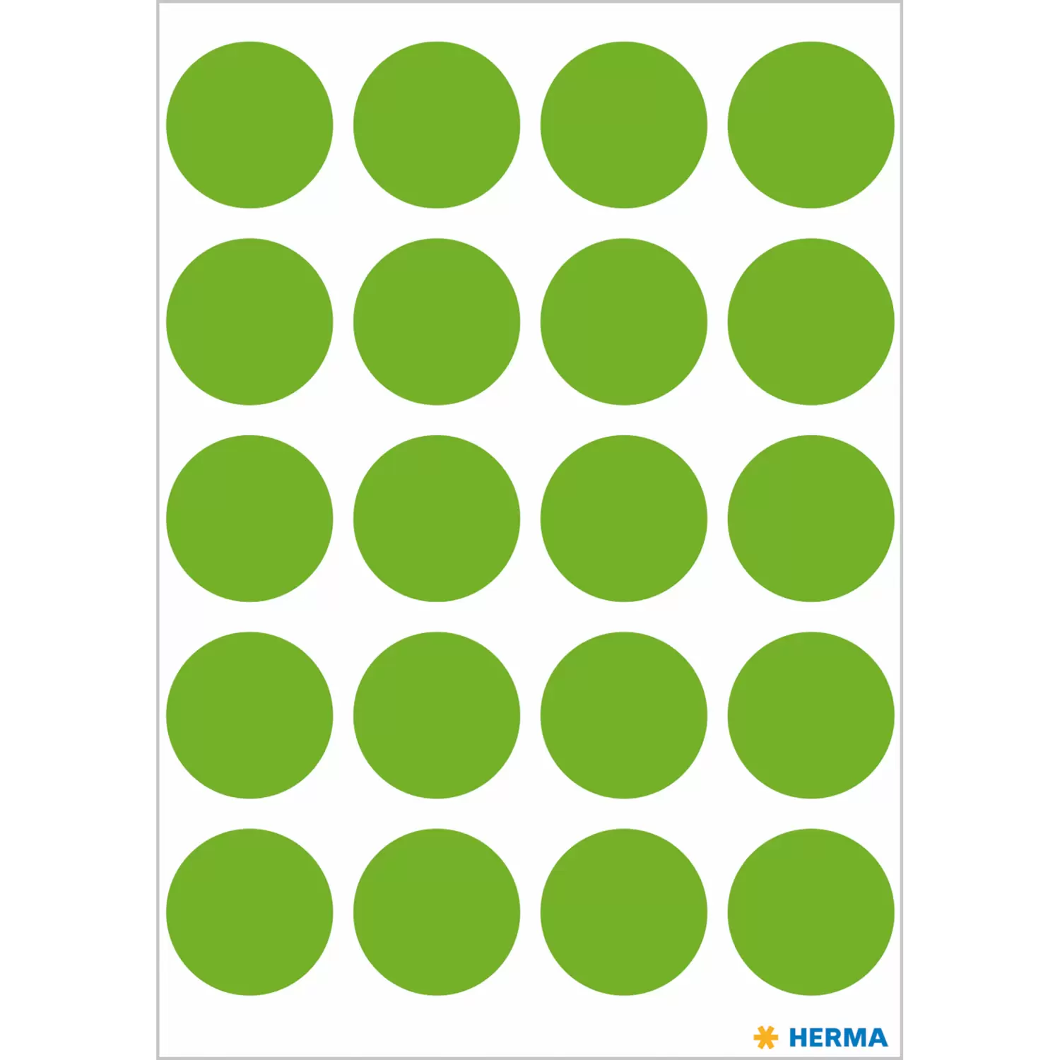 Vielzwecketiketten/Farbpunkte Ø 19 mm, rund, leuchtgrün, permanent haftend, zur Handbeschriftung