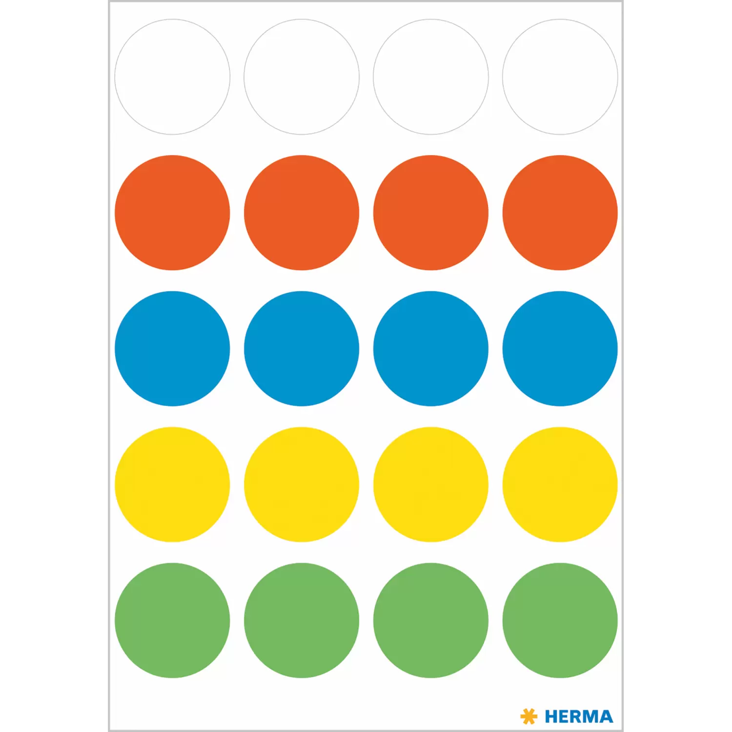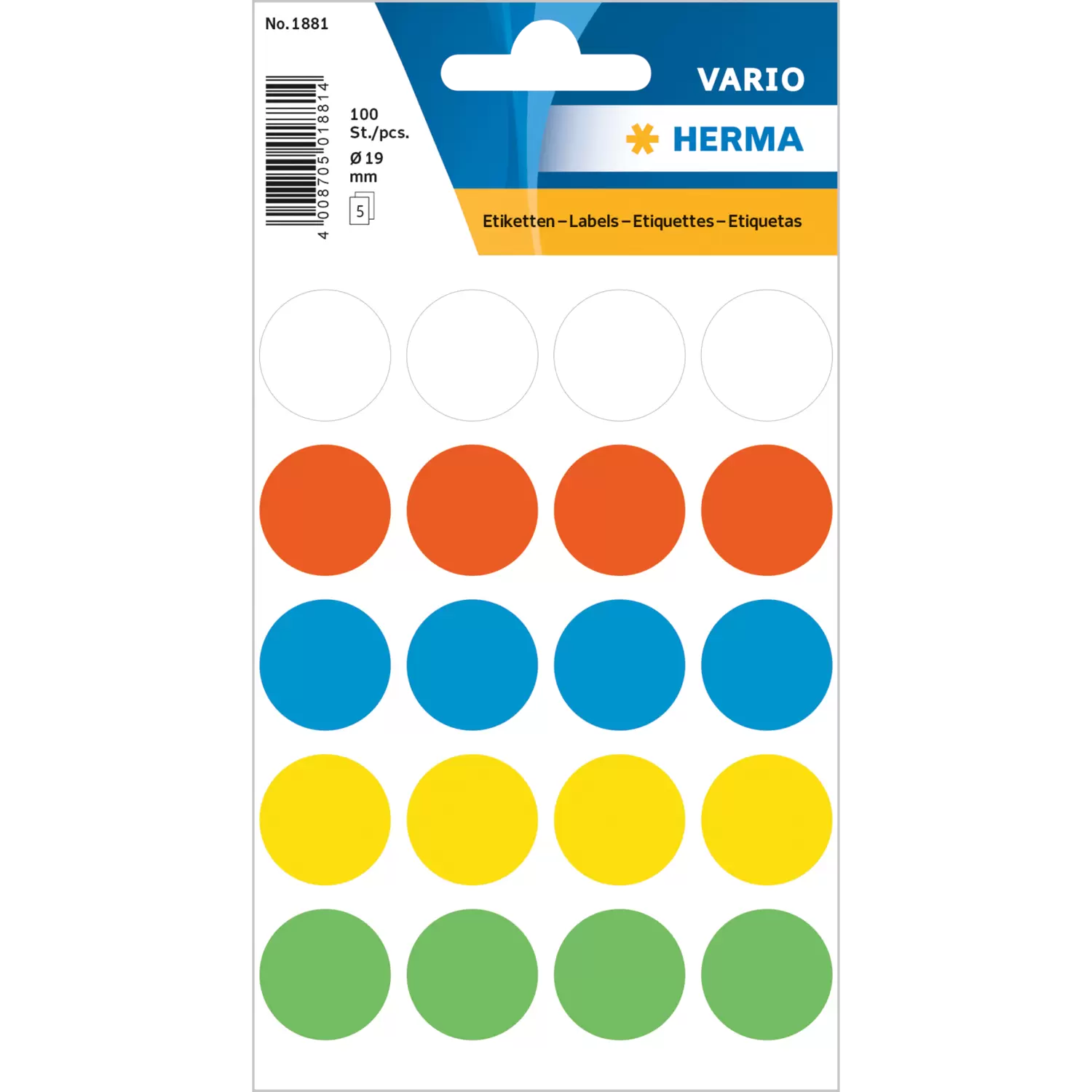 Vielzwecketiketten/Farbpunkte Ø 19 mm, rund, farbig sortiert, permanent haftend, zur Handbeschriftun