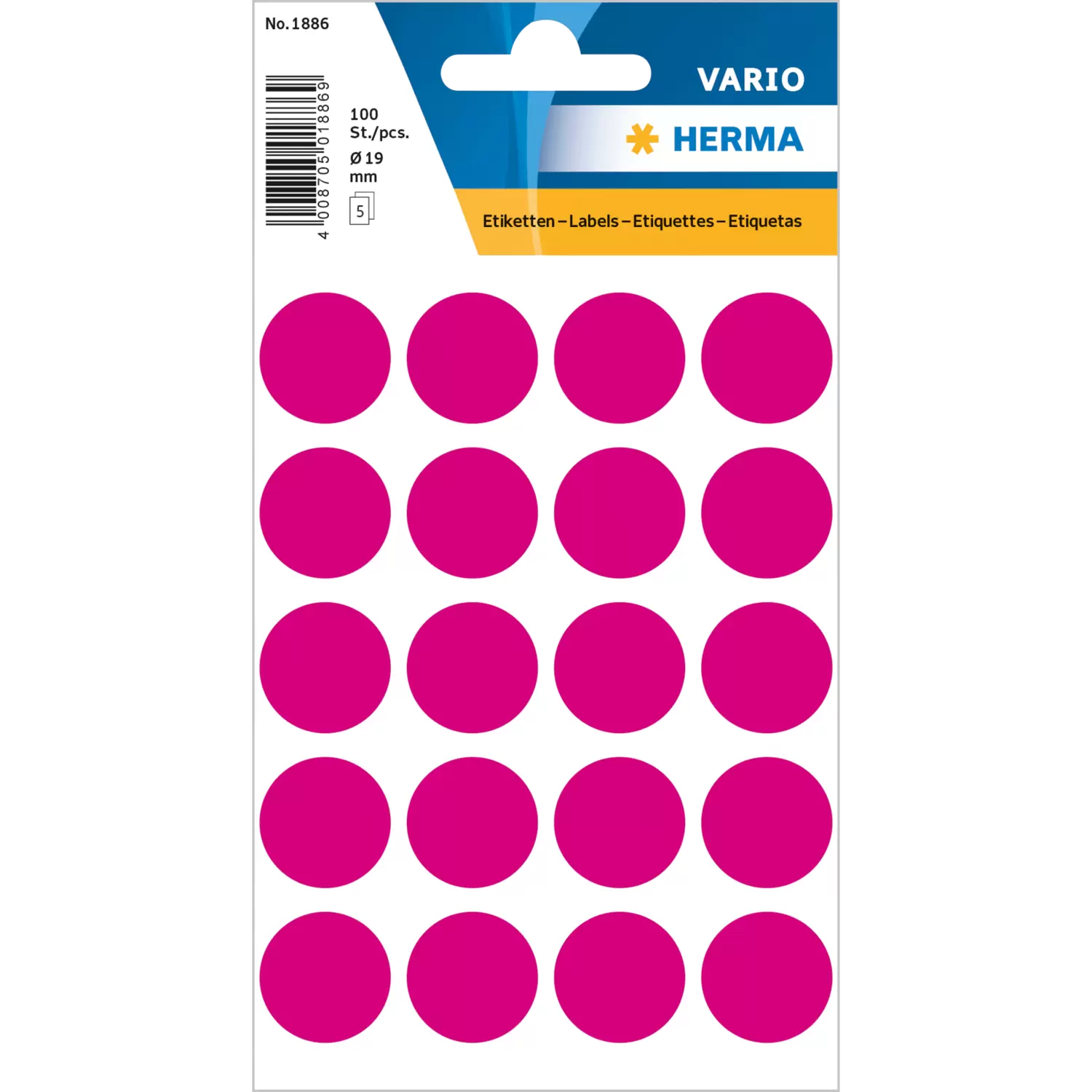 Vielzwecketiketten/Farbpunkte Ø 19 mm, rund, pink, permanent haftend, zur Handbeschriftung