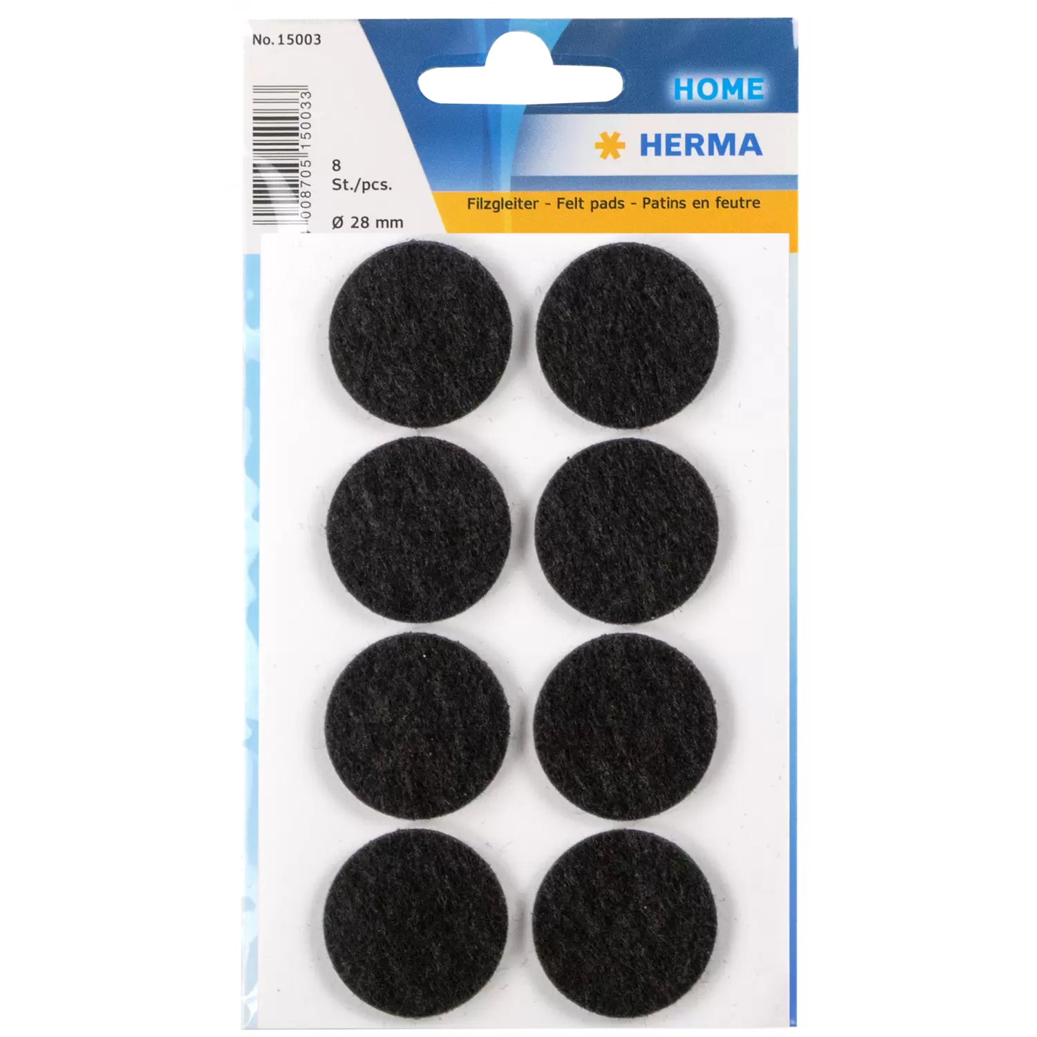 Diese runden Filzgleiter von HERMA schützen effektiv empfindliche Untergründe wie Parkett, Fliesen, Steinboden oder Linoleum. Die schwarzen Filzscheiben mit einem großen Durchmesser von 28 mm verhindern nicht nur das Zerkratzen von Oberflächen, sie sind außerdem eine sichere Lösung zur Vermeidung von Lärm durch das Verschieben von Möbelstücken wie Stühlen, Tischen oder Sofas. Natürlich eignen sich die Gleiter auch perfekt zum Anbringen an den verschiedensten Gegenständen. Egal ob Möbel wie Stühle, Küchen- oder Wohnzimmertische und Schränke oder auf schmückenden Gegenständen wie Vasen oder Dekorationsobjekten: Durch einfaches Abziehen vom Trägerbogen kann jeder Gleiter sofort schnell dort angebracht werden, wo er benötigt wird. In jeder Packung sind 8 qualitativ hochwertige HERMA VARIO Filzgleiter in schwarz enthalten.
