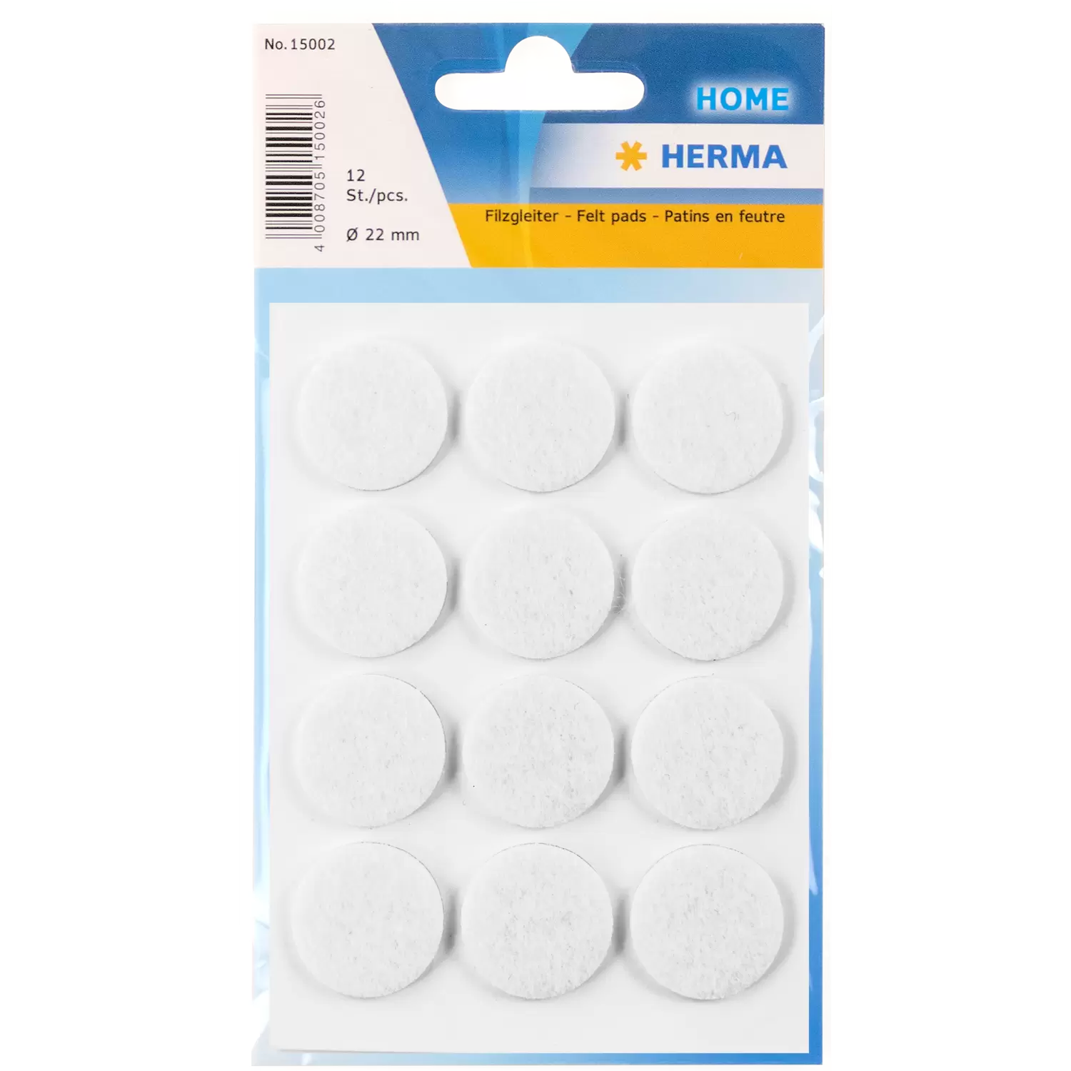 Diese Filzgleiter von HERMA schützen Böden und andere empfindliche Oberflächen effektiv vor Kratzern oder Schleifspuren durch das Verschieben oder Ziehen jeglicher Gegenstände, die sich darunter befinden. Ideal geeignet sind die weißen Filzgleiter mit einem Durchmesser von 22 mm für Möbel wie Tische, Stühle oder Sofas. Natürlich können die Gleiter in weiß auch unter andere Gegenstände wie Fernseher, Vasen oder Dekorationsobjekte aufgeklebt werden, wenn diese auf empfindlichen Oberflächen abgestellt sind. Die HERMA VARIO Filzgleiter weiß 22 mm überzeugen mit gewohnter HERMA-Qualität, sind selbstklebend und dadurch kinderleicht anzuwenden. Diese kleinen praktischen Helfer schützen Oberflächen zuverlässig vor Kratzern und Abdrücken. Je Packung sind 12 weiße Gleiter aus Filz enthalten.